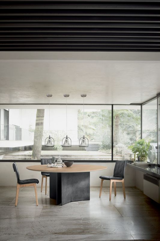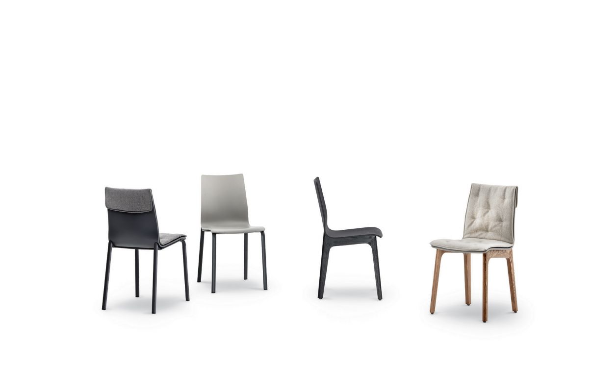 Chair with solid Wood or Metal frame. Shell in lacquered Wood with or without cushion quilted and upholstered.