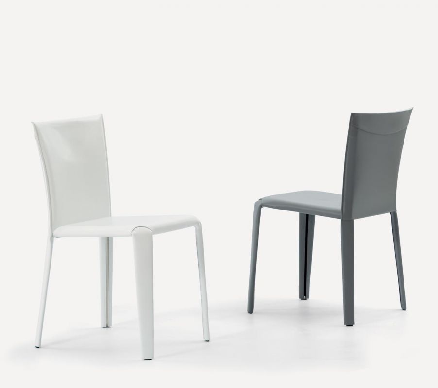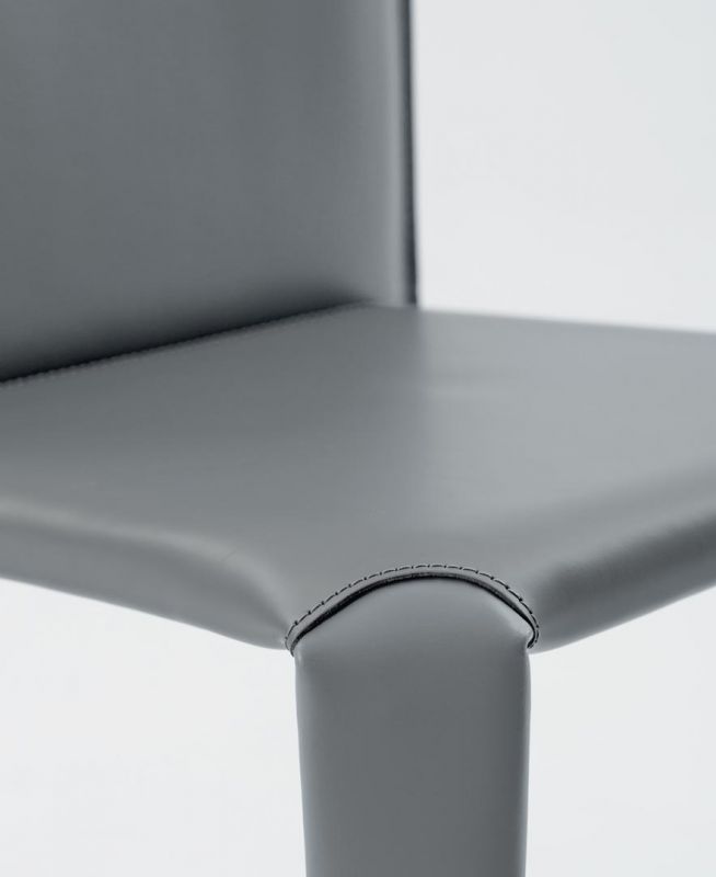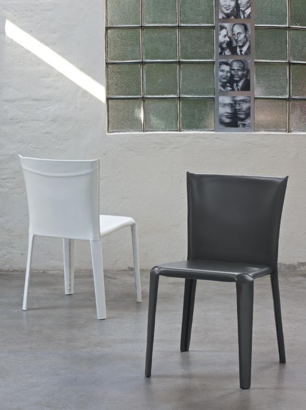 Chair with metal frame upholstered and covered in hide leather.