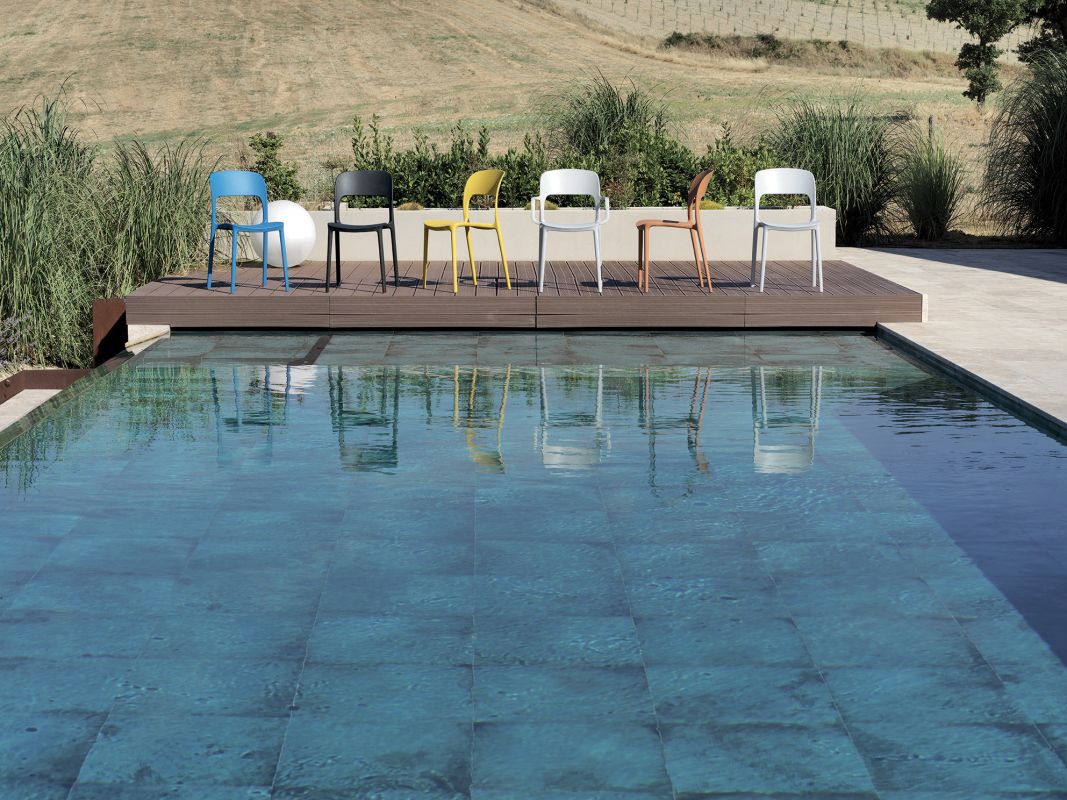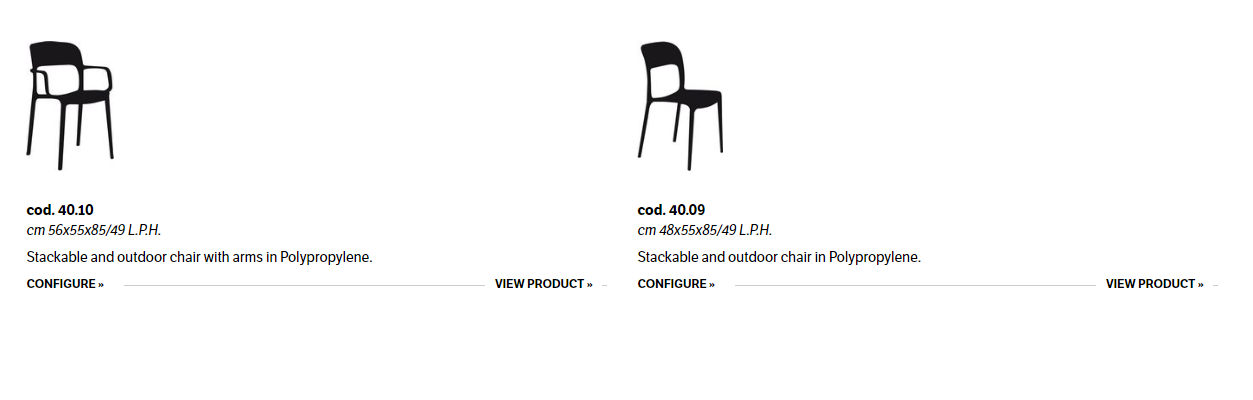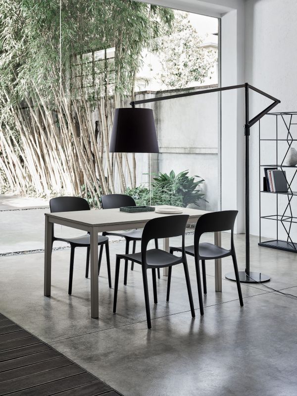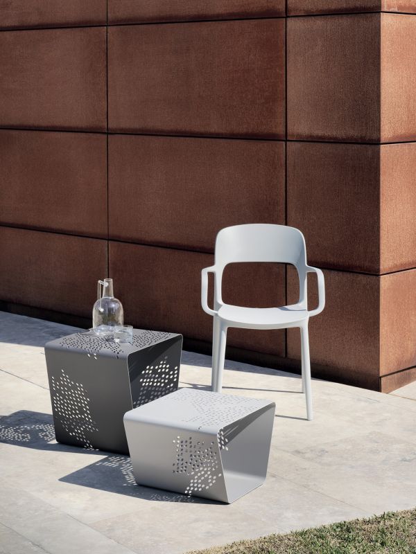 Chair and armchair in polypropylene and glass fibre.