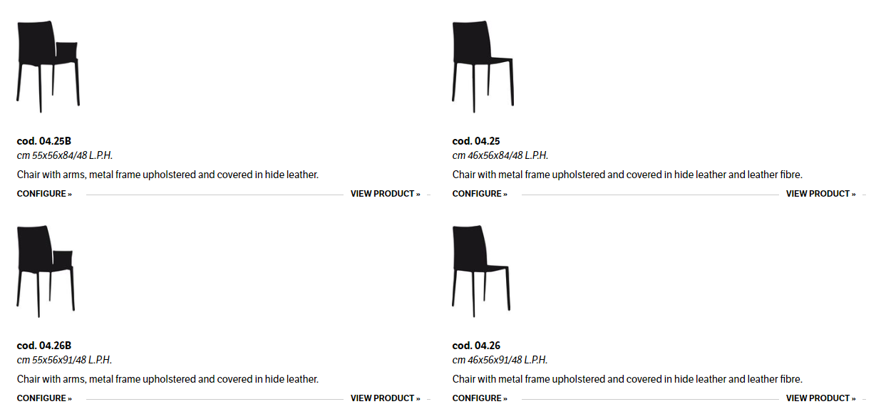 Chair and armchair with metal frame, completely padded and upholstered.