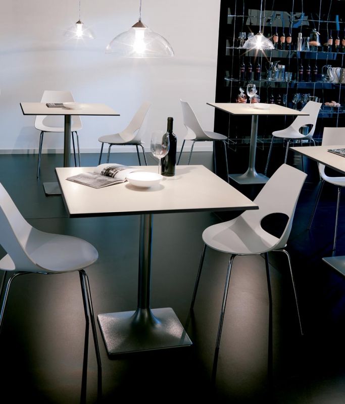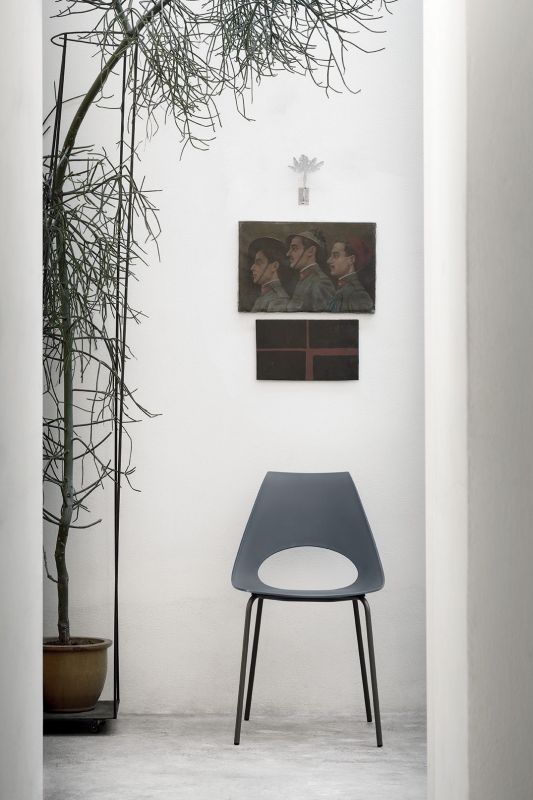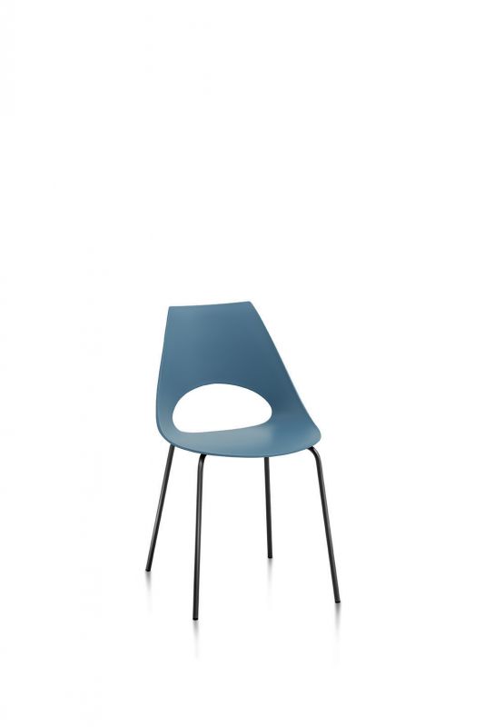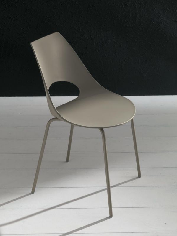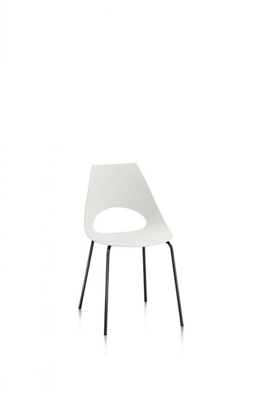 Chair with lacquered or chrome Metal frame, shell in Polypropylene.
