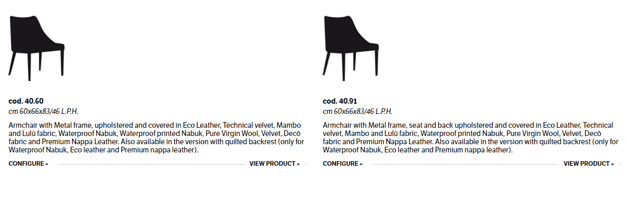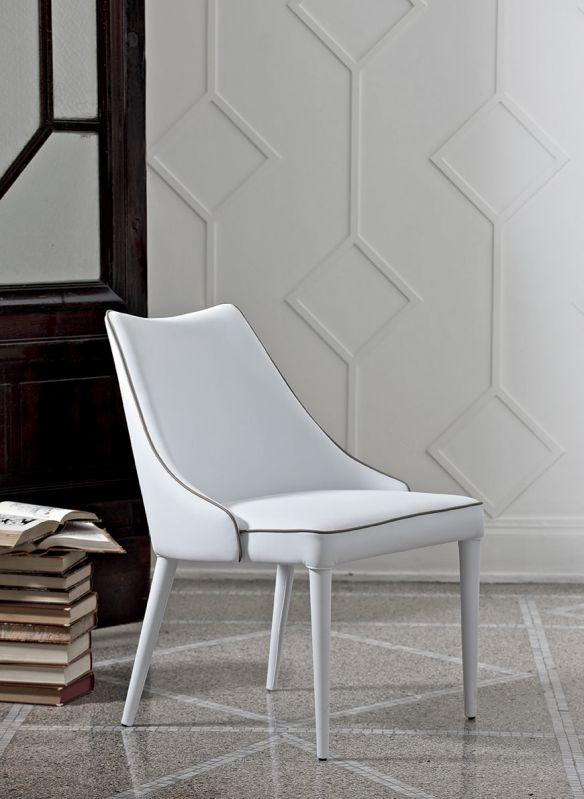 Armchair with Metal frame padded and upholstered. Piping can be in matching colour or contrast colour. Also available in the version with quilted backrest (only for Waterproof Nabuk, Eco leather and Premium nappa leather).