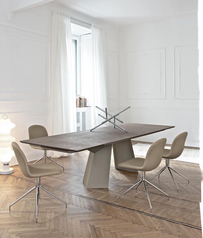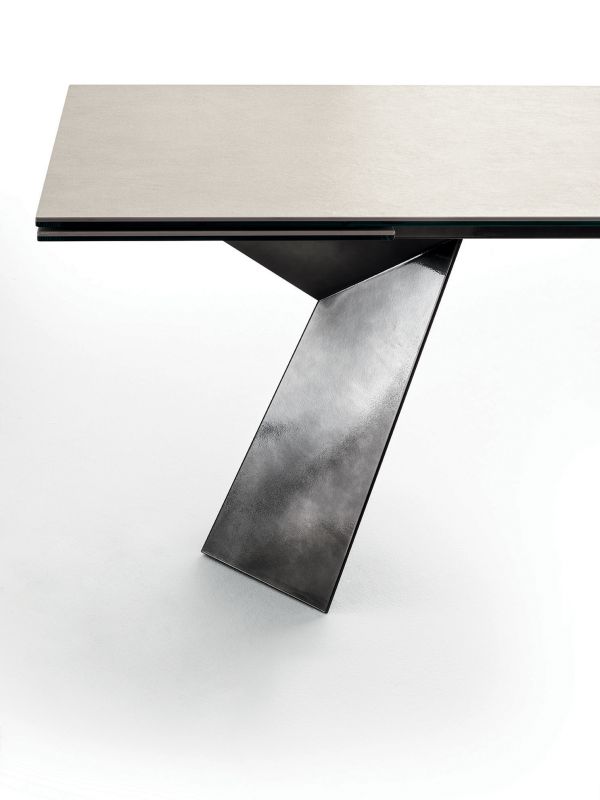 Table fix or with extensions, with lacquered Metal frame. Top in solid Wood, heritage walnut solid Wood, veneer with edge in solid Wood, veneer, glossy Glass, velvet matt Anti-scratch Glass, SuperCeramic, SuperMarble and natural Marble.