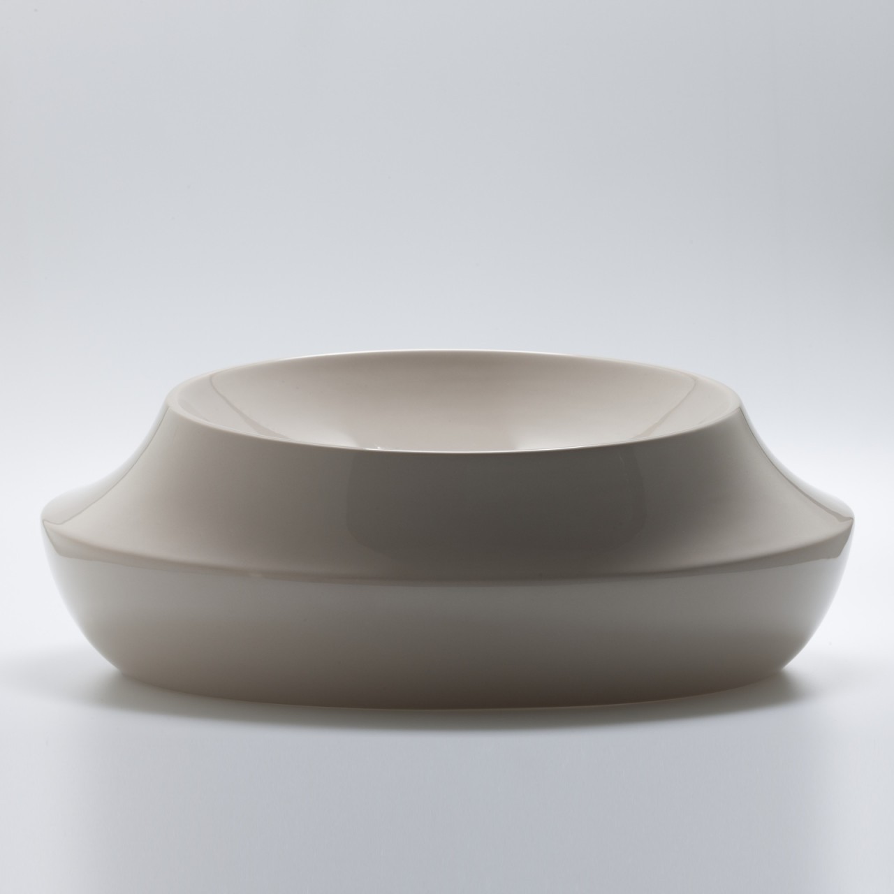Il susseguirsi di superfici concave e convesse caratterizza le forme della collezione Boa, mentre la ricercata asimmetria dona dinamicità e leggerezza ai volumi. I vasi e le ciotole sembrano oggetti galleggianti, corpi danzanti, sagome roteanti sulla superficie di un tavolo.