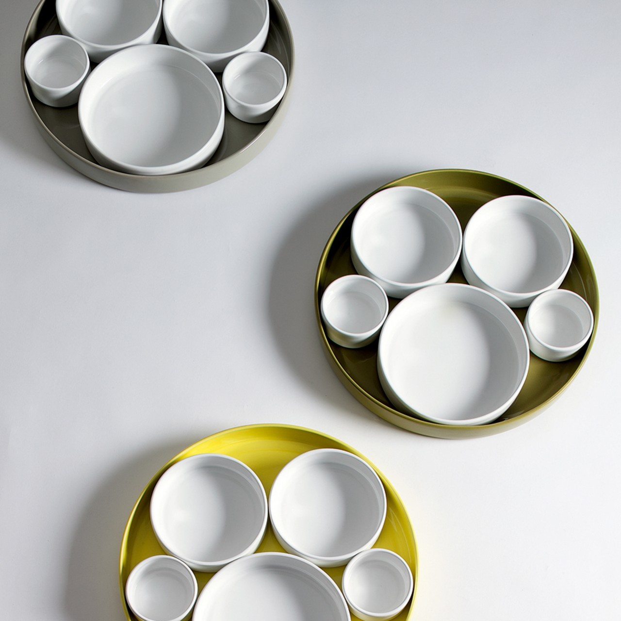 Un oggetto unico e plurimo che si trasformerà tante volte quante saranno gli utenti che lo useranno. Così Ninfea raccoglie piccoli cerchi in un unico grande cerchio: composto per un uso quotidiano, sparsi su un tavolo nelle occasioni importanti, dispersi per la casa in simpatico disordine.