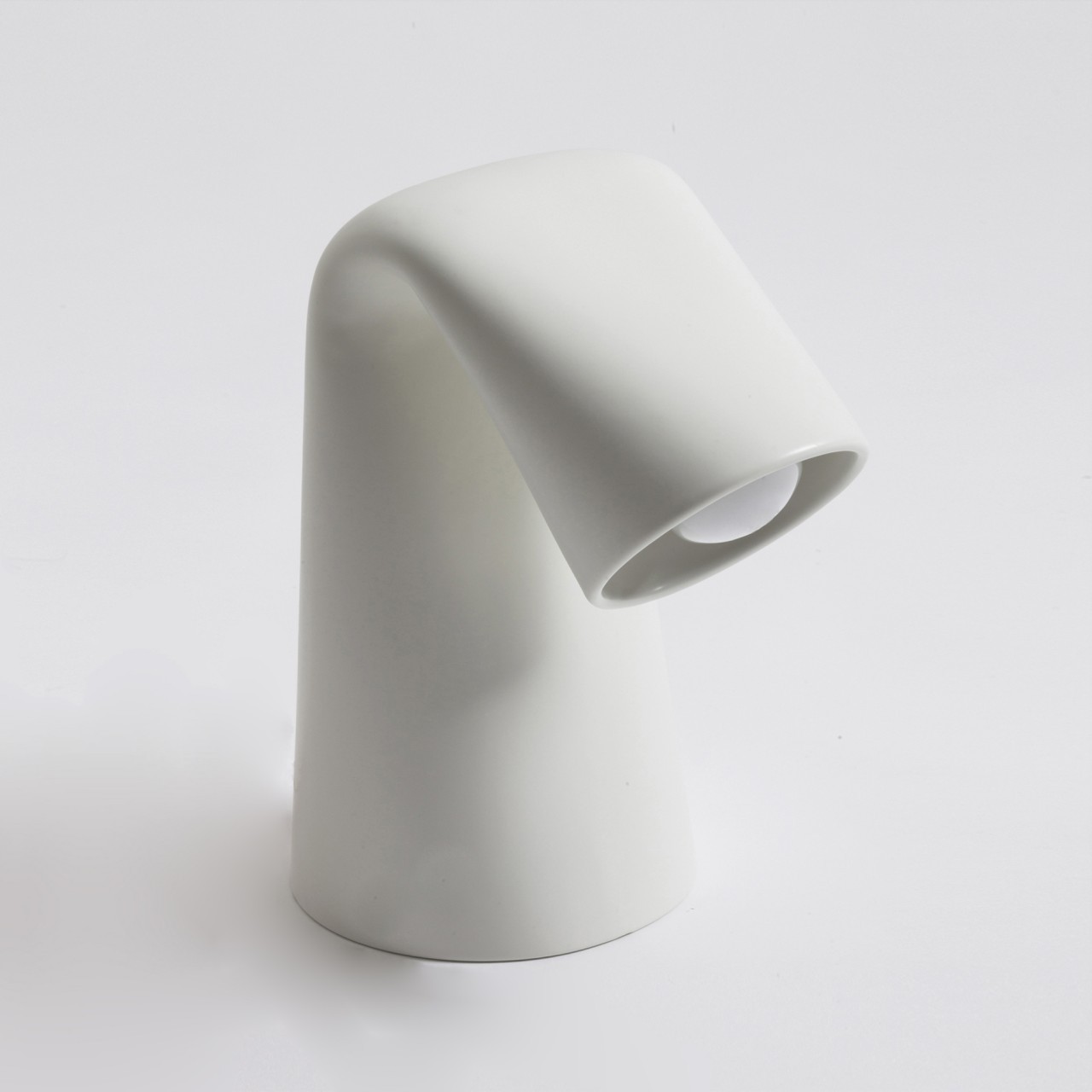 Con un inchino Kina saluta il sole al suo calare, proietta un cono di luce dal suo corpo fluido. Lampada da tavolo realizzata interamente in ceramica e disponibile in diverse tonalità di colore.
