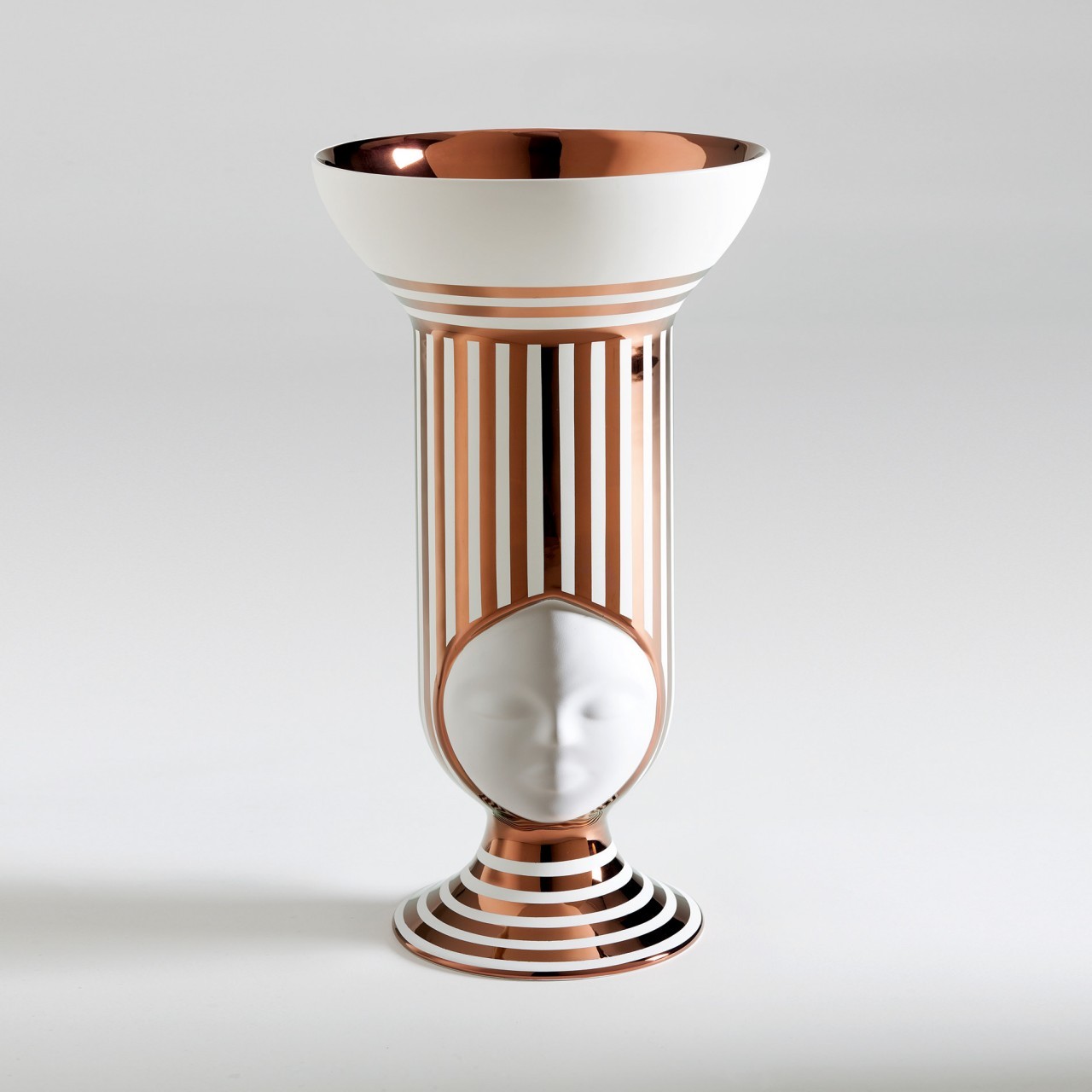 I loro nomi sono Louise, Frida, Sofia, Helen e Clara, sono sorelle. Fantasiose, felici e premurose. A loro piace la bellezza degli spazi puliti e aperti, dove la loro testa piena di armonia e creativit? pu?2 trasmettere luce. Questa ?¨ una collezione di vasi che rende omaggio alle donne di tutte le culture e di tutti i tempi. Le donne sono sempre state il pilastro della casa e questi pezzi mostrano la loro presenza ovunque si trovino. Disponibili nella versione bianco opaco, dipinte a mano in bianco opaco e nero oppure decorate a righe da esperte decoratrici con rame opaco o lucido.