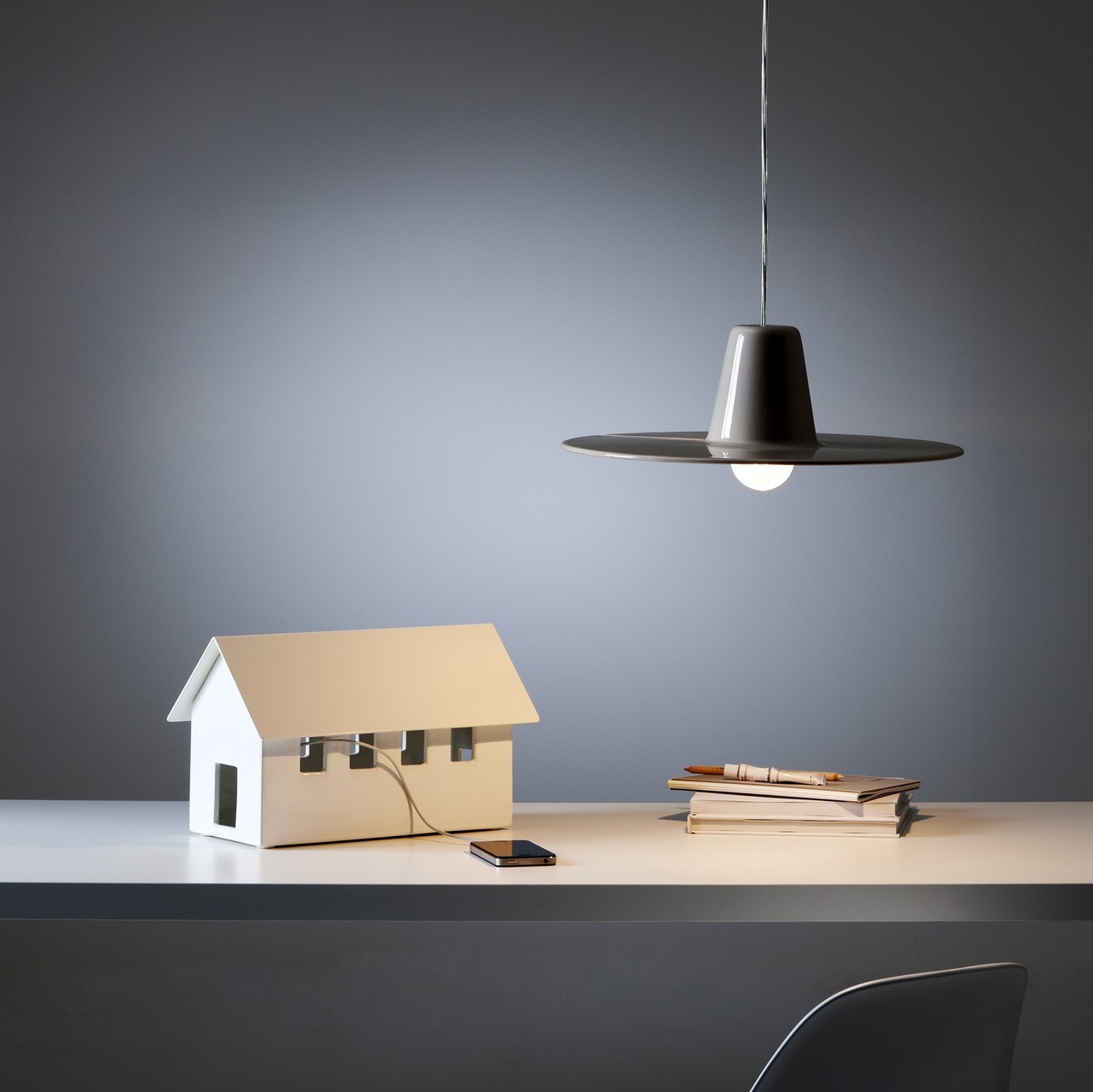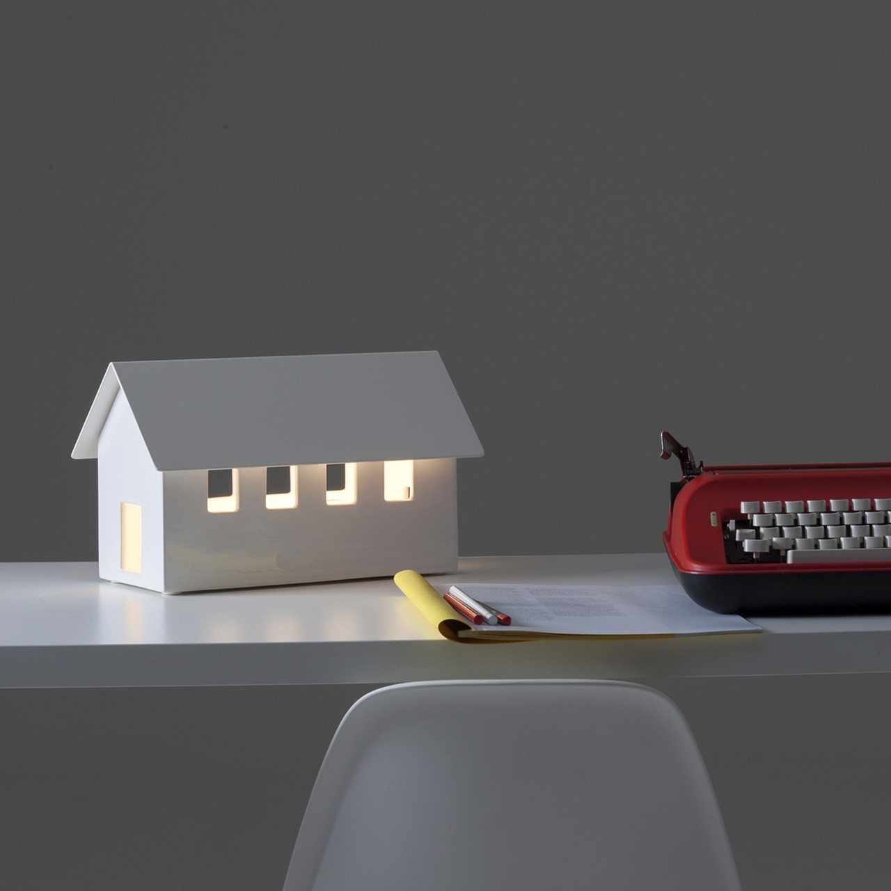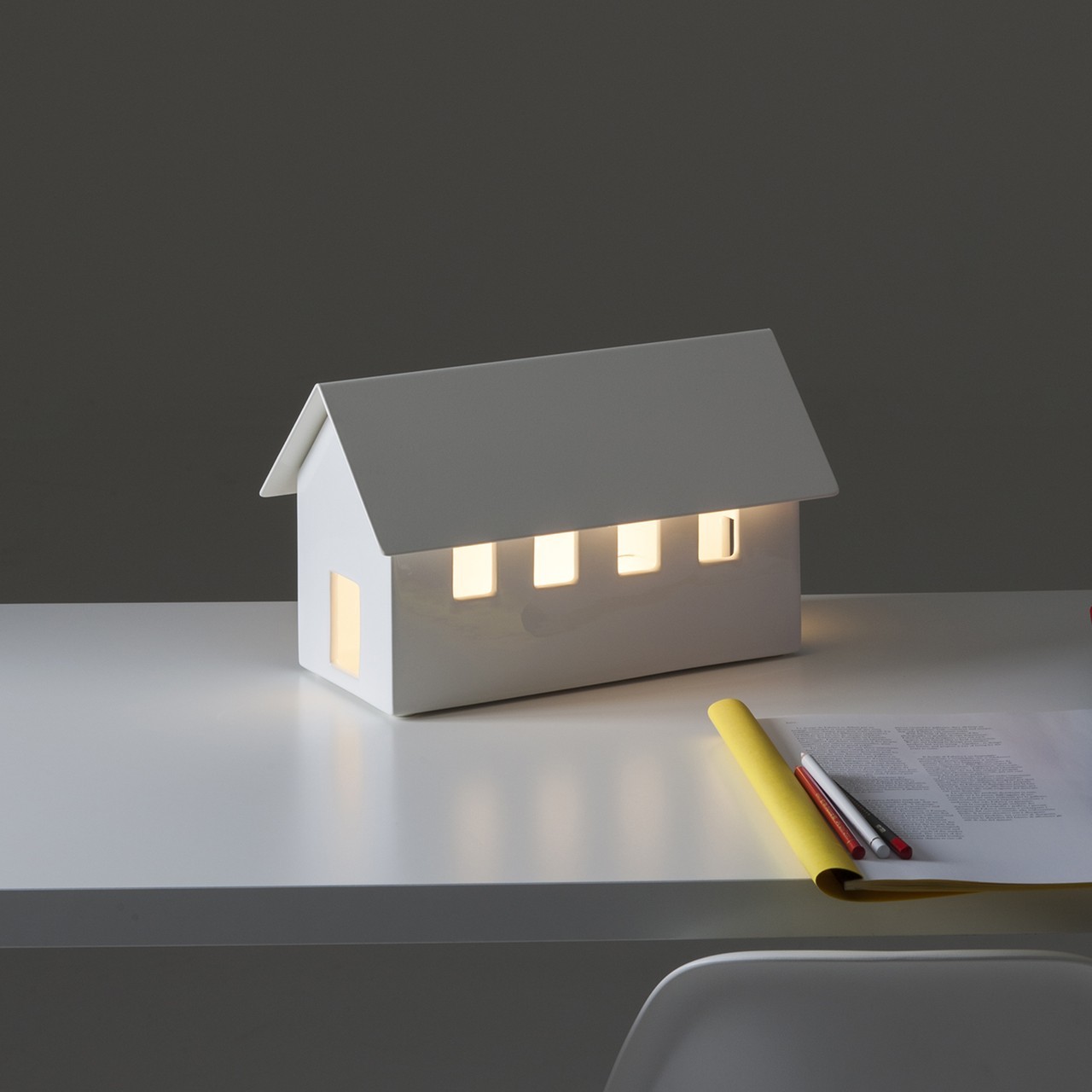 Piccole architetture, custodi di energia. Casette in ceramica dalla forma iconica, nate per nascondere al proprio interno le antiestetiche multiprese. Inserendo una semplice lampadina, si riempiono di luce che crea suggestivi effetti ottici.