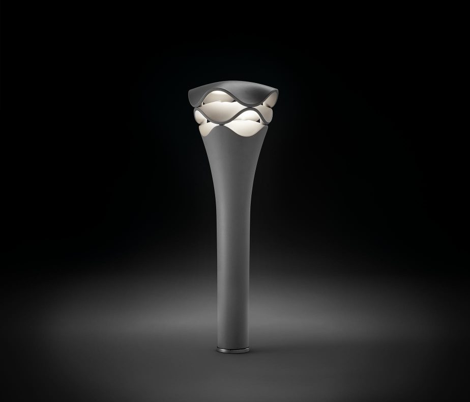 It is mainly used as a bollard lamp but can quickly connect with a wider reality: interior wall lamps, or the post version for intermediate spaces. In all of its designs, Cornet includes a dimmable LED source that distributes light through the lamp’s undulating layers, creating an atmosphere that is natural, slightly broken, but never dominant.