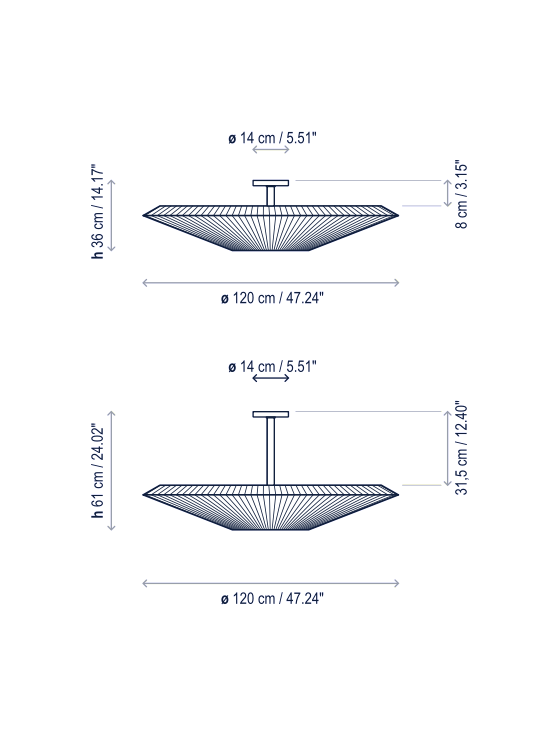SIAM breaths a certain oriental air derived from the inverted shade. It takes its essence from MEI and offers a soft cascading light. These luminaires can be grouped in varying compositions, superposing shades partially one over the other, and creating a perfect mural for any space.