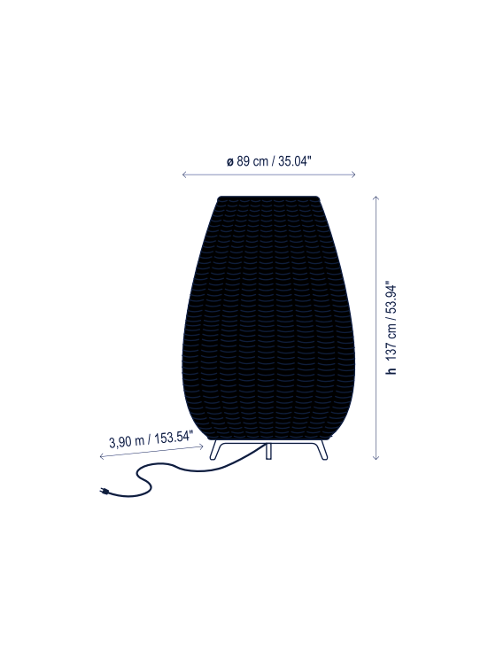 The AMPHORA collection has been designed to create a warm environment especially in outdoors. However, thanks to its highly decorative look, the Amphoras can equally be placed both in outdoor and indoor. The size and shape of this collection pay a subtle and discreet homage to the terracotta amphora formerly used for gardens and terraces decoration. In this collection we have used a synthetic wicker to make up big handmade baskets as shades with a tripod foot subjected to a cataphoresis treatment. The light source is located inside the polyethylene ellipse which grants its water tightness. The light emitted by the Amphora collection is full of nuances and shapes avoiding dazzling.