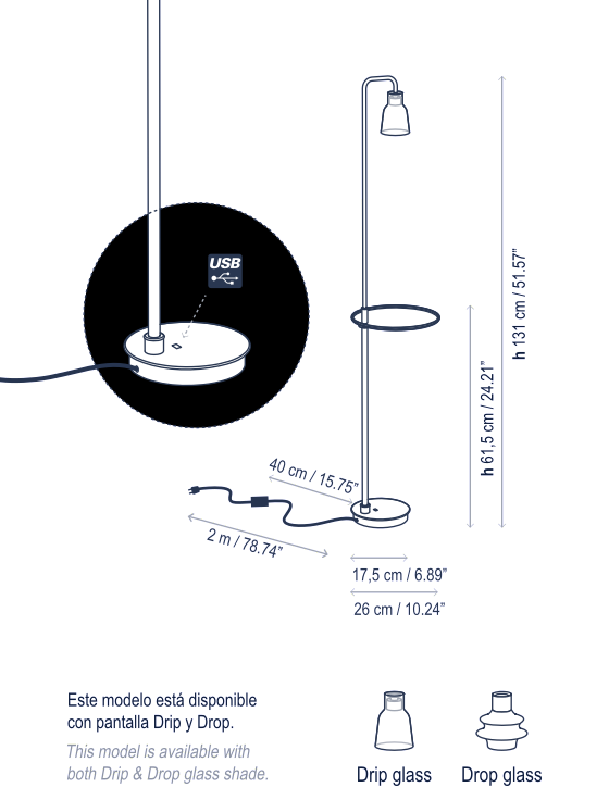 The Drip takes the diversification of the Drop to the next level. The Drip has the Drop's structure but has a personality all of its own. It is a lighting system that not only evolves into various product types (wall lights, table lamps, floor lamps with USB connection, among others), but also into other lampshade concepts. The new shade of the Drip gives one the impression of being in the presence of a completely different lamp from the Drop. It embodies the Drip's spirit; simple, minimalist and with straight lines. The Drip's small lampshade is also made from borosilicate glass, giving it a fine, delicate aesthetic. The choice of glass is closely linked to the light it casts, which is bright, but intimate. It creates ambiance while being highly practical for anyone nearby. "I always keep in mind the space a lamp will be placed in because that is where it has meaning," explains Christophe. The design and function of the Drip and Drop fit perfectly into residential projects and contracting work. Because it can be applied in many ways, it works very well in hotels, both in common spaces and in rooms.