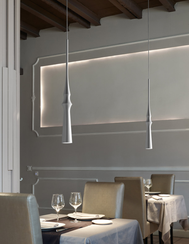 SLEND’S main goal is to make spaces elegant throughout slim and delicate shapes. These lights have three different formats which can be combined as desired, acheiving a large range of applications. We can show them individually or grouped in different heights. Slend is made out of spun aluminum and includes the led bulb inside, which can be easily replaced. The direct light and the bulb with a 100o light opening makes Slend an excellent choice for spaces and objects we want to light up (restaurant tables, store counters, stairwells…).
