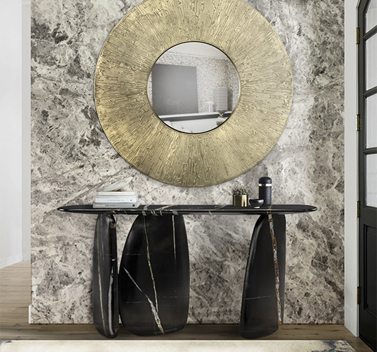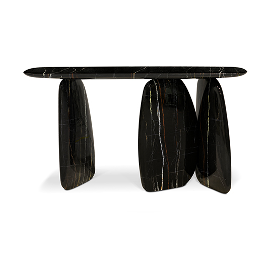 Dolmens are ancient stone monuments from the Neolithic period. These unique structures were the inspiration behind the ARDARA Console Table. With a finish in black faux-marble painting glossy, this modern hallway console table will give a unique twist to any modern contemporary interior design