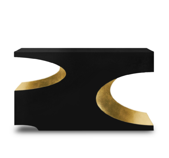 Bryce is a giant natural amphitheatre caused by erosion through the Paunsaugnt Plateau. The BRYCE II Console pays tribute to this plateau through its unique design in high gloss black lacquer and glossy gold leaf. The BRYCE II can either have a structure in black lacquer or, give it an extra touch, a faux-marble painting and glossy varnish. This hallway console table will be the focal point of your modern home design.