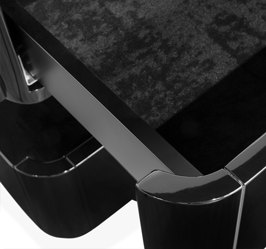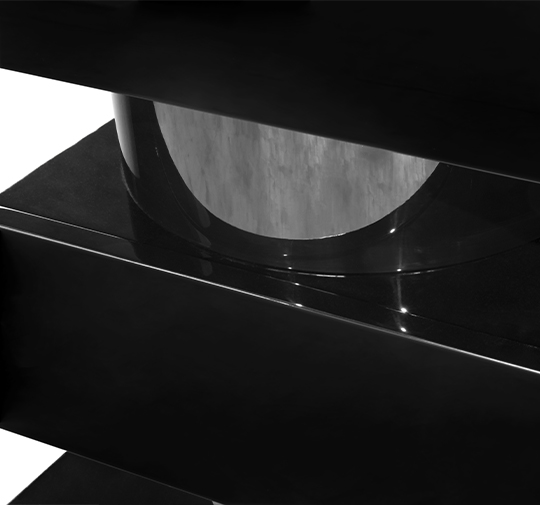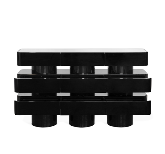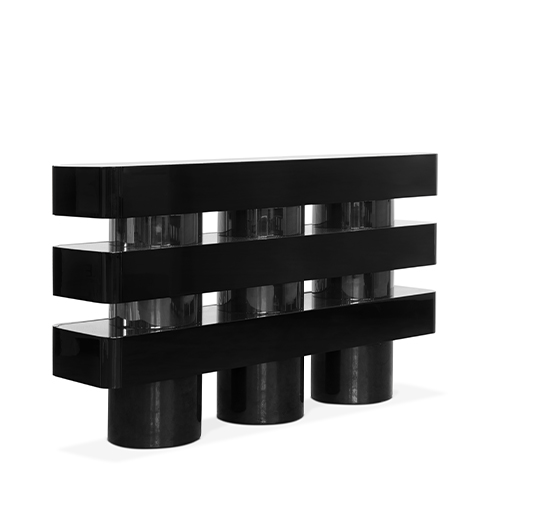 Shinto shrines are places of reverence and the abodes of the 'kami' - gods- where sacred objects are stored in the innermost chamber of the altar, not seen by anybody. SHINTO II Console was designed with a gloss black lacquered structure and ash wood veneer white tabletop, safekeeping everything you set on it. This entryway console table with drawers fits any modern classic set, adding a touch of style and refinement.