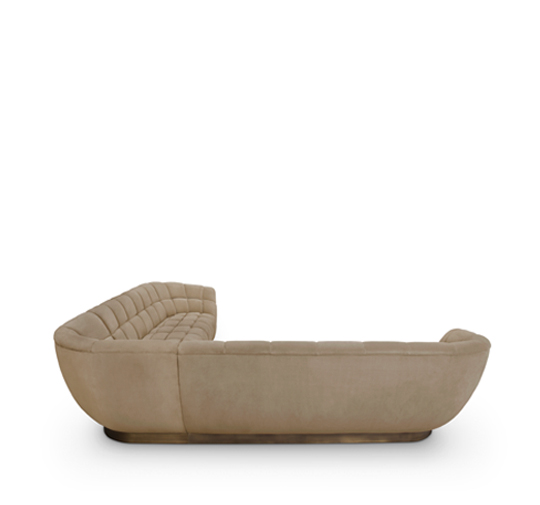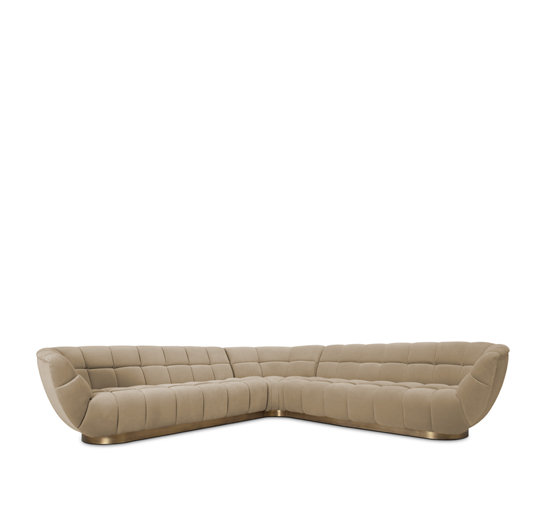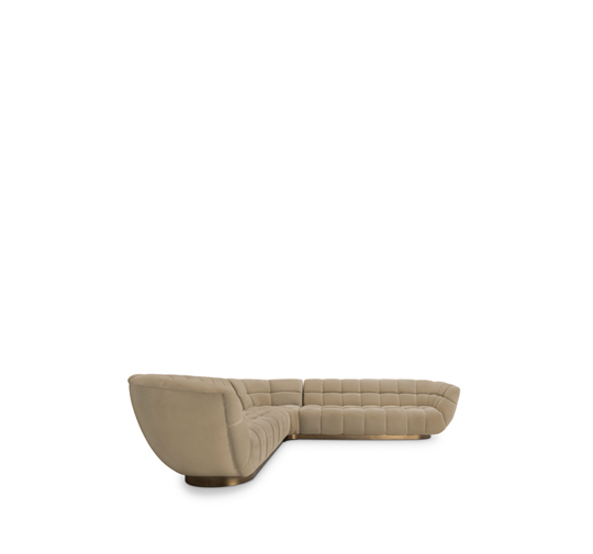 Metamorphosis is the transformation process from caterpillar to butterfly. It inspired the creation of ESSEX Corner Sofa. This velvet corner sofa is upholstered in velvet and has a base in brushed aged brass matte that adds charisma. It will add refined elegance to any living room set that only velvet sofas are capable of.