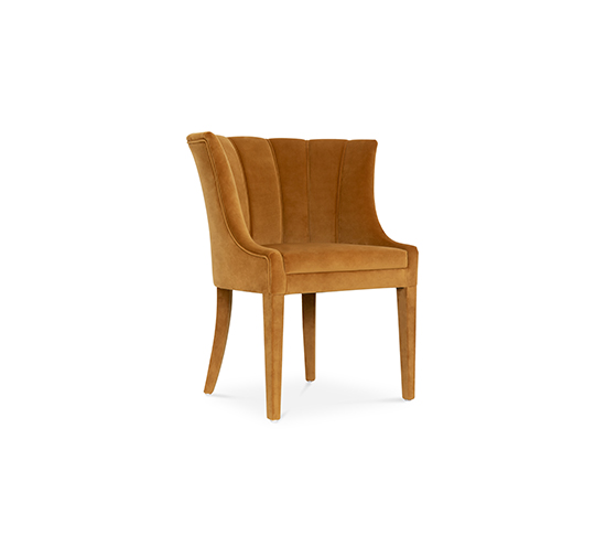 Begonia is a beautiful flower from tropical countries. Inspired by its warm energies and the bold shape of its petals, our designers conceived BEGONIA Velvet Upholstered Dining Chair. Its charming curves and soft cotton velvet upholstery make this the perfect curved back dining chair, an elegant choice for any modern interior design.