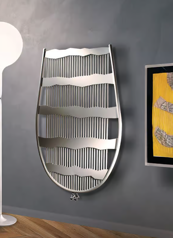Rino Carrara proposes a model quite unlike the usual rigid radiator, adding the contents and shapes he loves to include in all his works to create an embracing overall design.