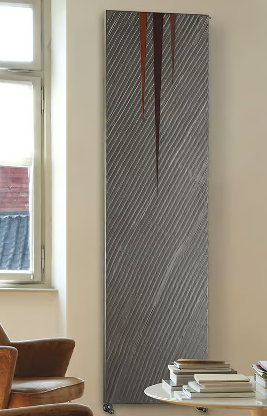 Virgo, with its surface graved by nearly signed furrows, creates a minimal decoration inspired by nature. Splits crack like cuts the surface producing discontinuities and revealing the inner core of the radiator.