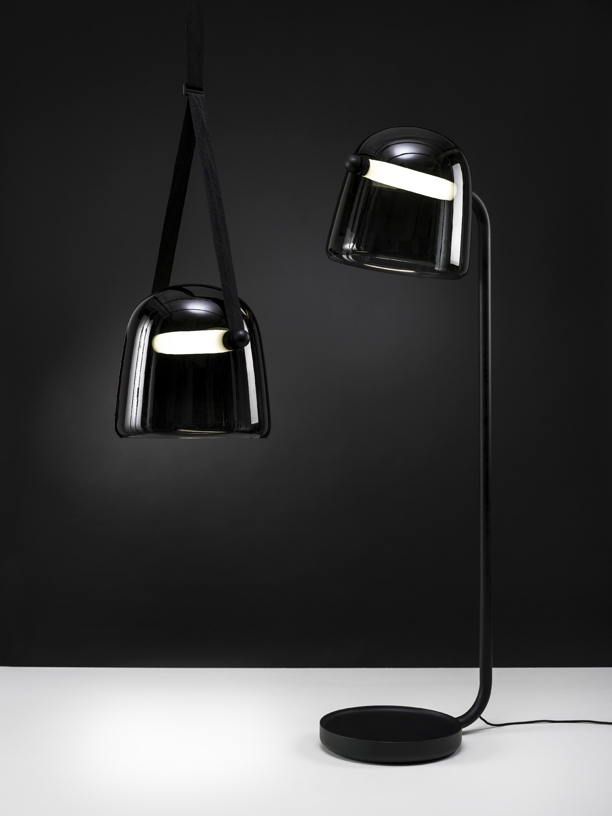 The Mona collection is based on the concept of penetrating forms. The light source boldly traverses the ample volume of smooth handblown glass to reveal the thrilling tension inherent in the design. The collection’s essence, however, lies in its unconventional construction and refined combination of materials. It also boasts dimmable tubular LED light sources, developed by Brokis, each with a different colour temperature.