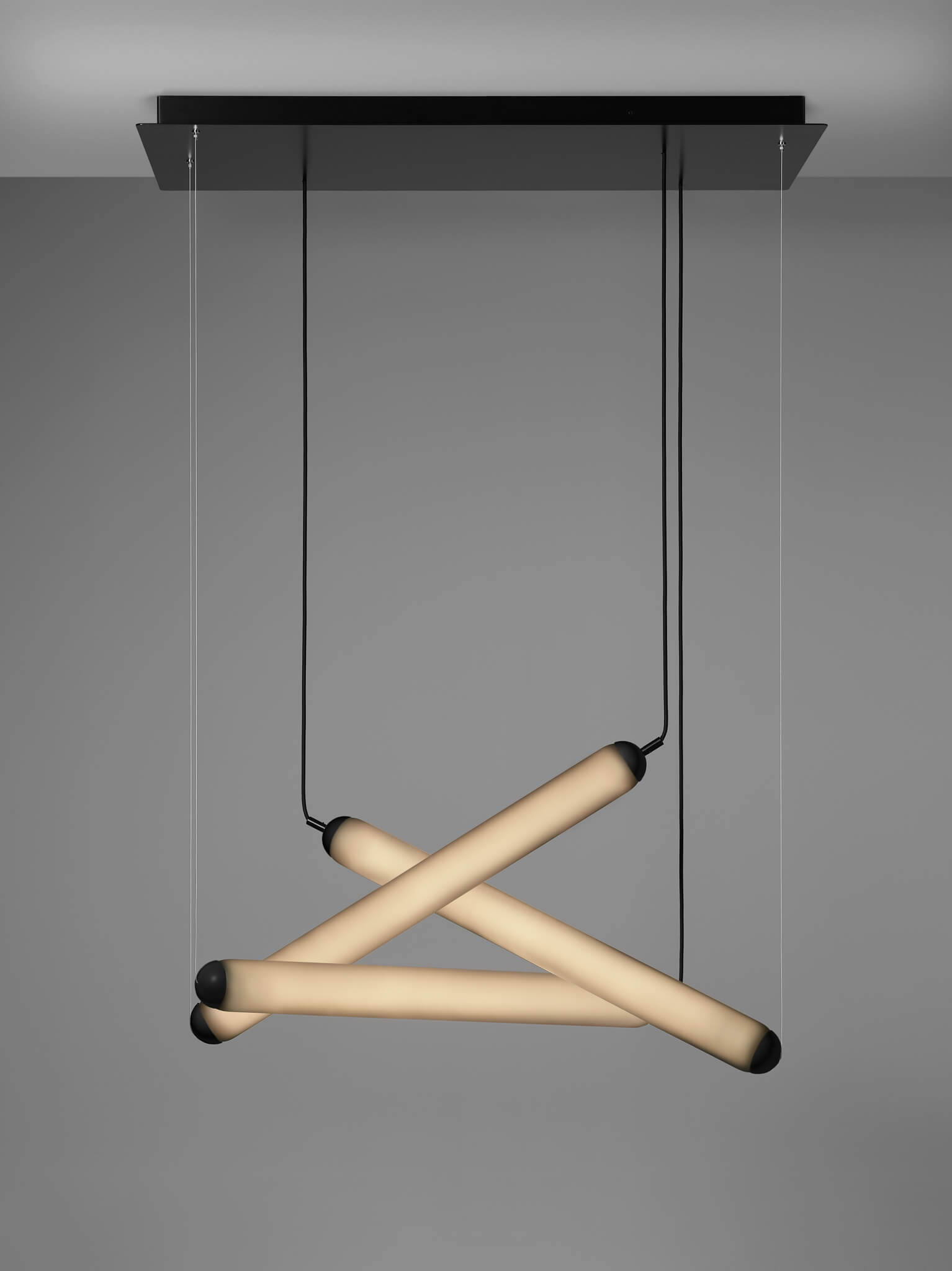 Puro Eclectic is a new suspension light composition comprising handblown Puro tubes. The primary aim was to create a simple yet linearly dynamic and expressive composition to hang above dining tables. The name Eclectic was chosen based on the variously adjustable diagonal and intercommunicating glass tubes.