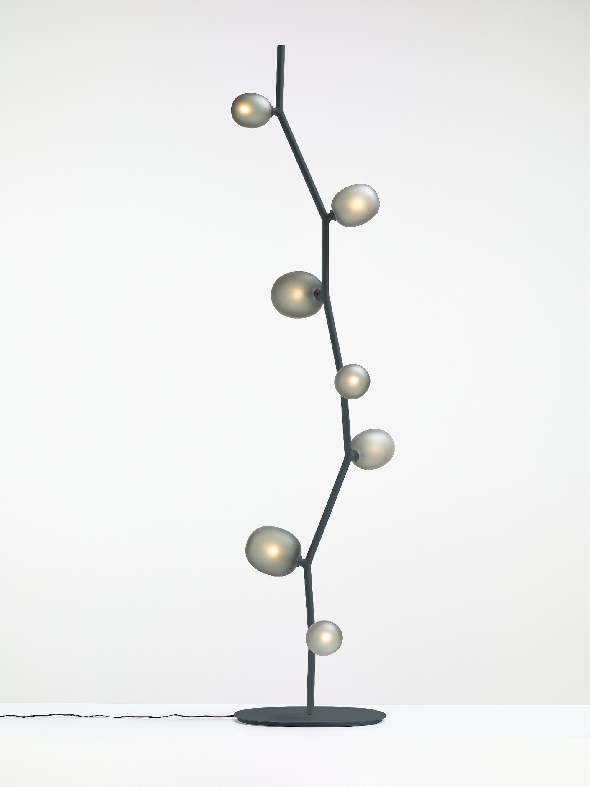 The collection features three sizes in opal or smoke glass. Variable, elegant, and precise in workmanship all the way down to the smallest detail, IVY is a high-tech lighting concept well suited to both commercial and residential applications. In intimate home settings, for example, a single elegant branch can be used, or multiple branches can be joined together to create a curtain of light. IVY has many forms and justly takes its place among artistic, so-called bespoke, lighting installations.