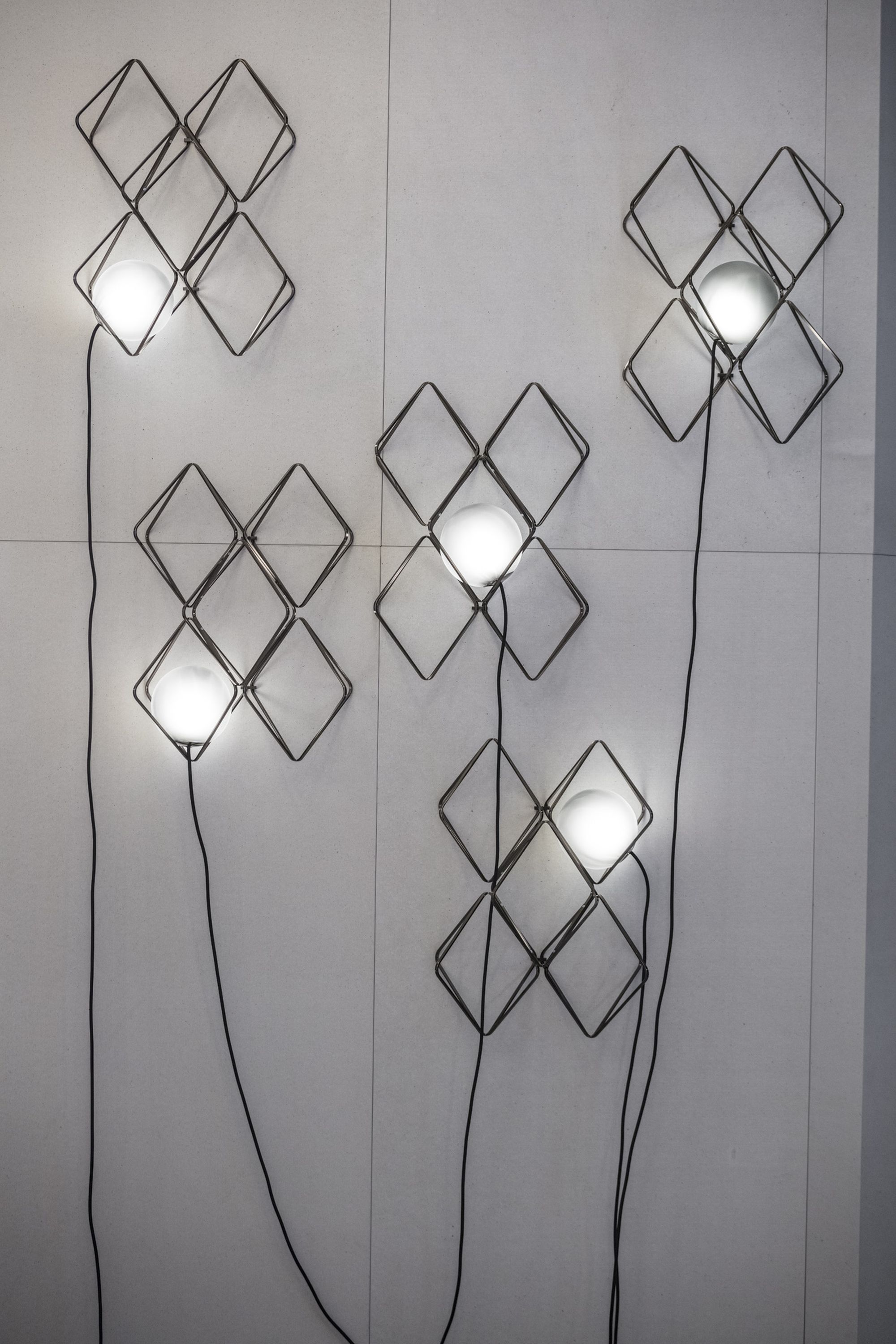 The Jack O’Lantern Table is available in two sizes and its Small version comes in size of 325 x 260 mm. This subtle and geometrically balanced light offers a wide variety of combinations. It can be hung separately or in vertical lighting arrangements. In addition to the suspension variant, there is also a wall composition comprising five frames joined in a single module for up to five glass spheres, which rely on nothing more than gravity to stay in place.