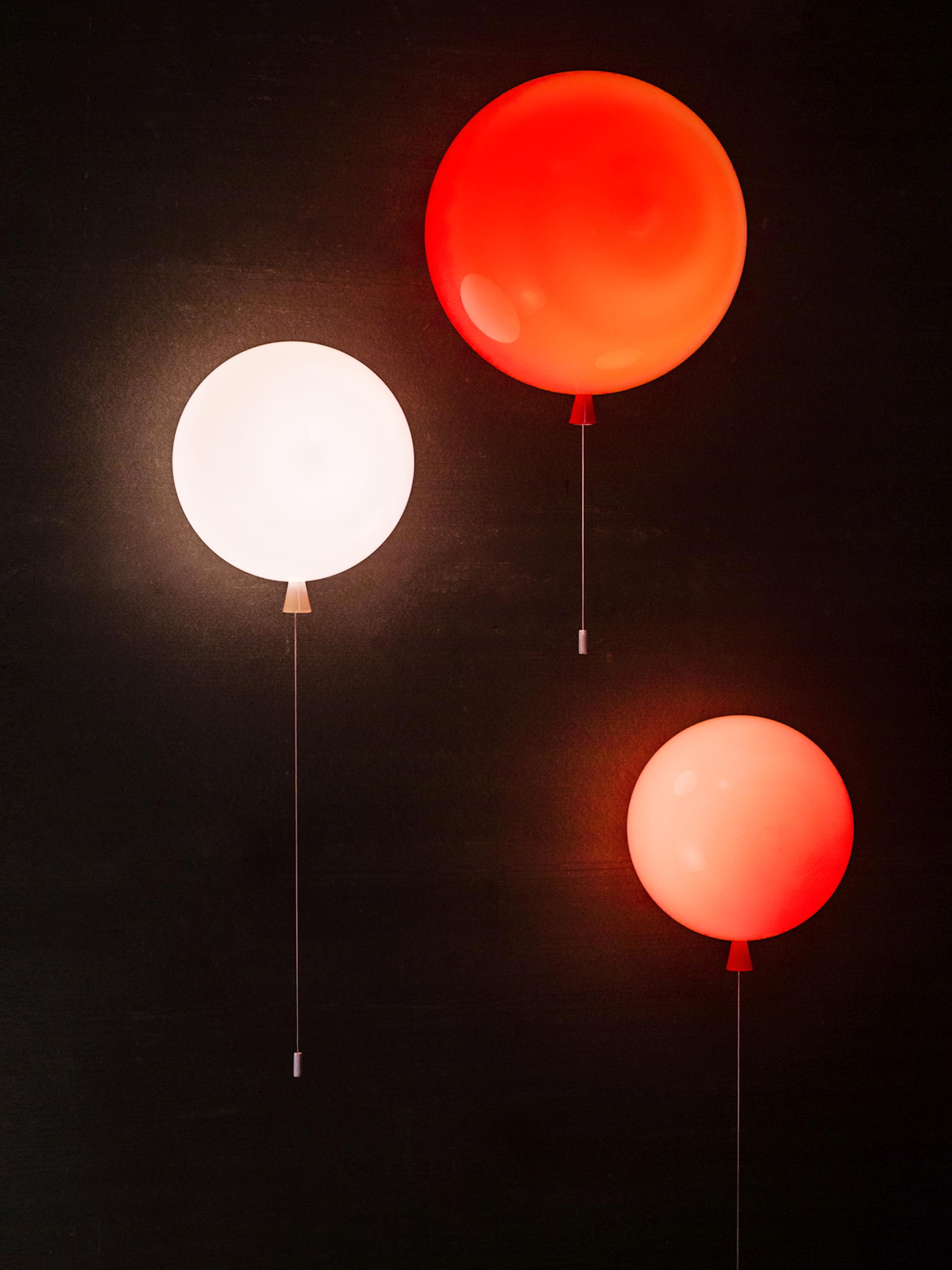 The Memory collection awakens the imagination and beckons back to a carefree childhood. The wall and ceiling versions in different sizes, the wide range of colour options, and a selection of finishes give this lighting experience a large degree of versatility. The illusion of inflated balloons is flawless right down to the dangling string, which serves to switch the light on and off. This is beauty in its simplest and most persuasive form.