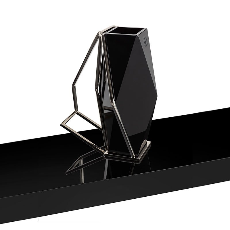 Crafted with Murano glass, blowed and beveled, the Fringe vase gives a true testimony to Bugatti’s strive for perfection.The metal chromed frame exalts technical refinements and masterly workmanship, reflecting the extraordinary of Bugatti’s world.