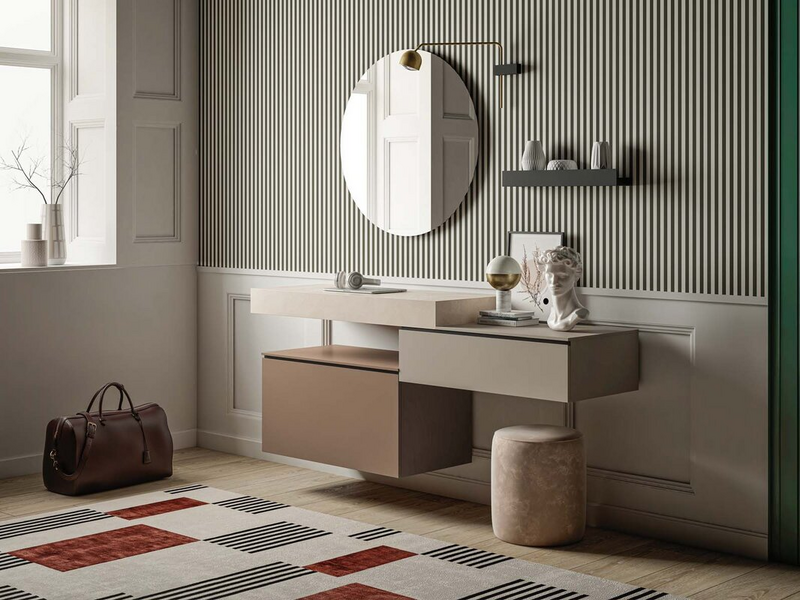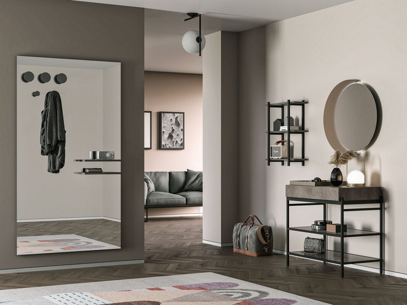It's the minimalist entrance furniture you don't expect. Inspired by a metal tube with a refined square cross-section, it develops infinite number of possibilities: rational, light, rigorous, airy, elegant, practical and modern. Everyone has his own entrance, equipped to meet his own needs.