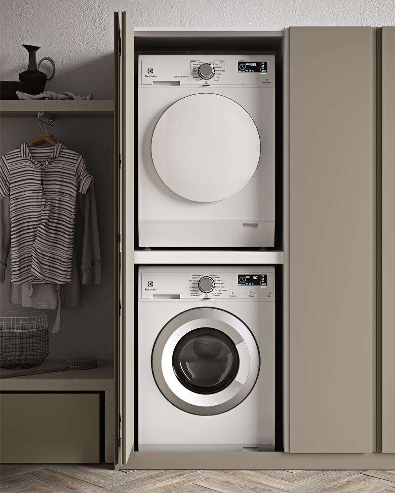 Idrobox is the equipped laundry furniture that interprets the most diverse daily needs, from a small storeroom to a bathroom, to a true domestic laundry. Versatile in its vast modularity, it offers innumerable interior fittings to leave the outside with a perfectly functional order and clean aesthetics