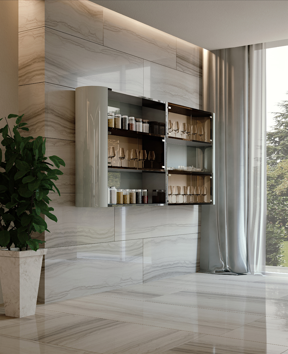 Una gamma di arredi modulari, dove le note stilistiche della collezione, elegante e minimal, sono interpretate giocando con i materiali e le lavorazioni ricercate.