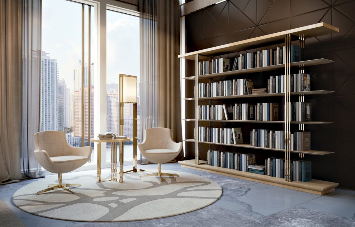 La preziosità degli arredi é accentuata dai riflessi dell’acciaio e dell’oro delle strutture, in perfetta sintonia con gli inserti dell’elegante “Rosa” del marchio Bizzotto Italia elegante dettaglio stilistico senza tempo.