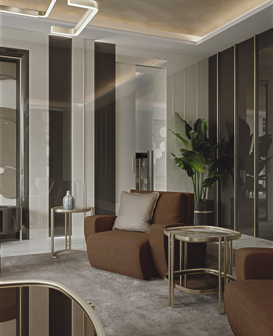Una gamma di arredi modulari, dove le note stilistiche della collezione, elegante e minimal, sono interpretate giocando con i materiali e le lavorazioni ricercate.