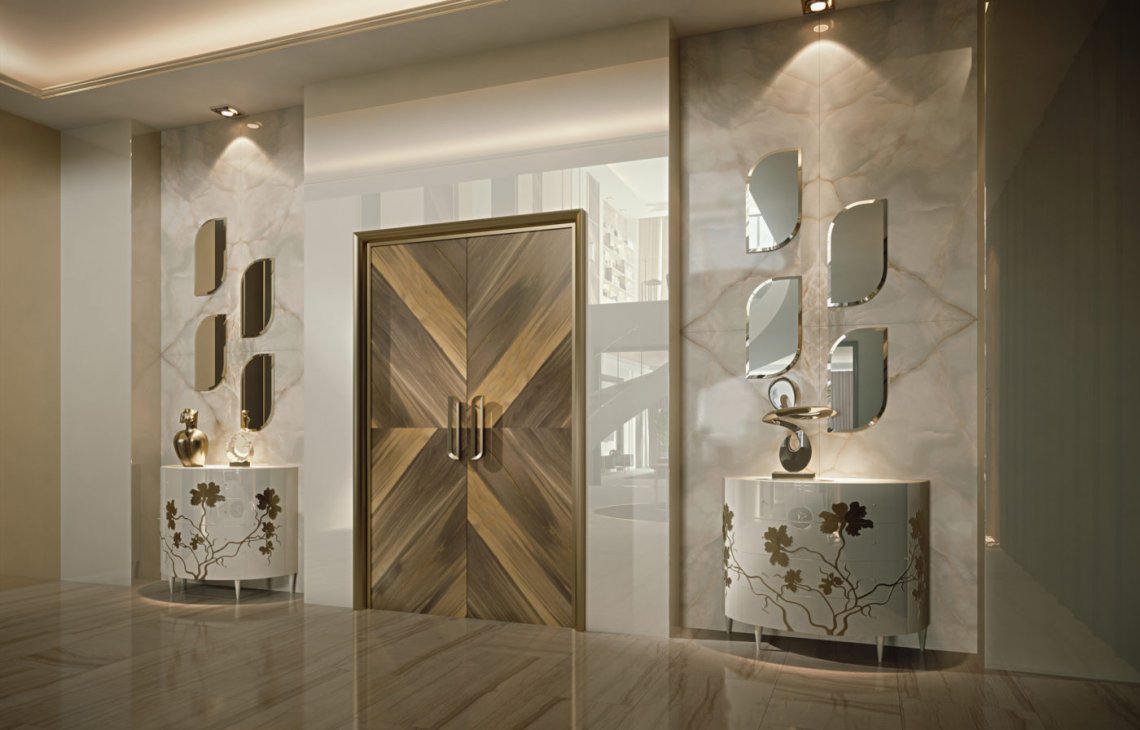 Un decoro raffinato e artistico proposto in versione “Ton sur ton” per un effetto elegante e sobrio, in versione in foglia oro e argento per un contrasto più deciso.