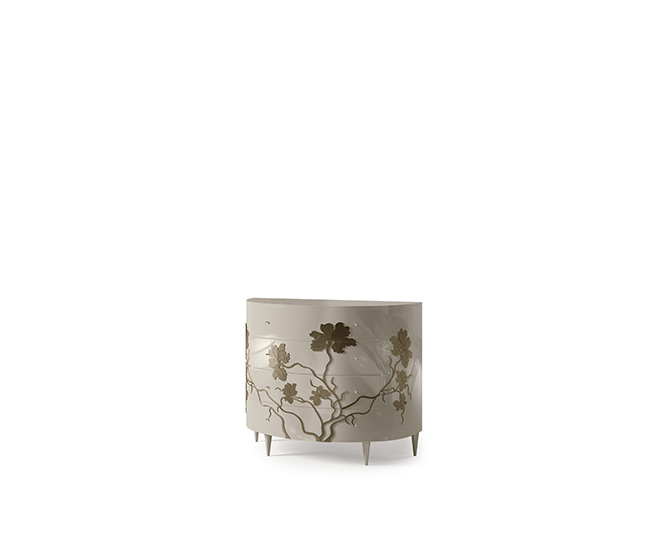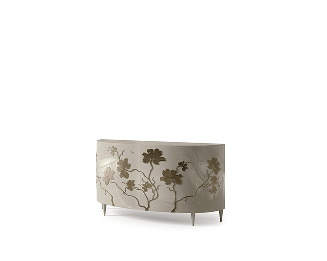 Una collezione ispirata alla delicatezza di un fiore senza tempo. Un ramage fantasioso realizzato a rilievo per impreziosire le superfici di mobili e boiserie.