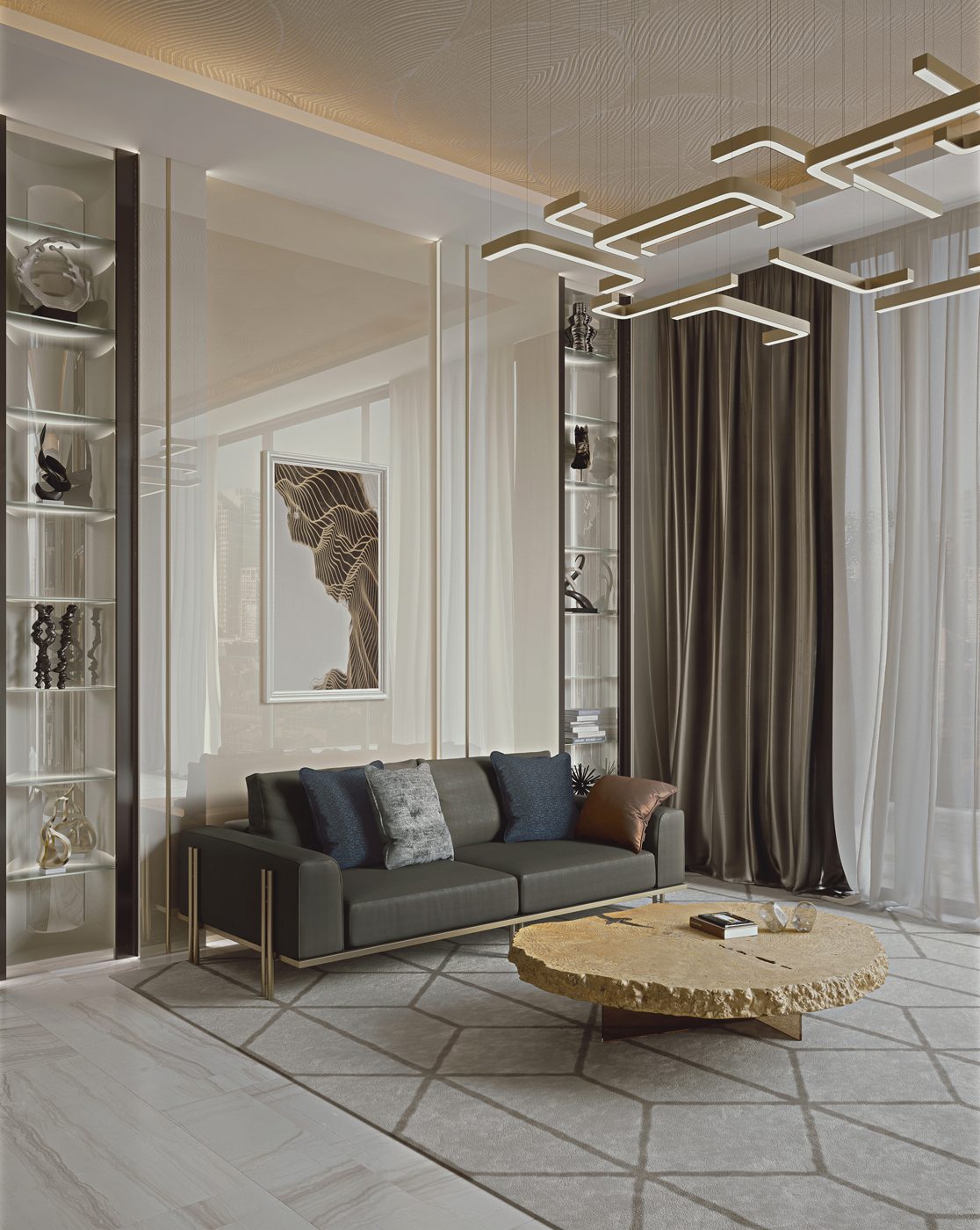 Imitano la leggerezza e la mutevolezza dell’aria le linee sottili e arrotondate della collezione Ikat, caratterizzata da una serie continua di contrasti: quelli tra volumi pieni e vuoti, tra superfici lucide e opache, tra elementi chiari e scuri.