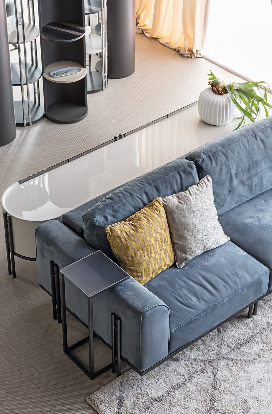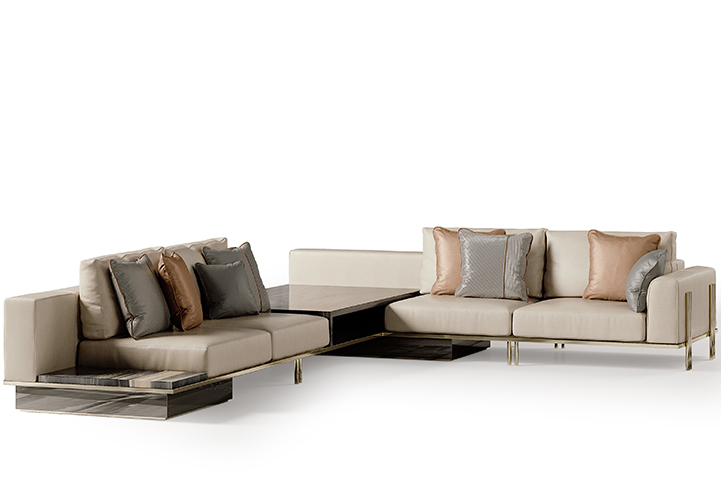 Una gamma di arredi modulari, dove le note stilistiche della collezione, elegante e minimal, sono interpretate giocando con i materiali e le lavorazioni ricercate.