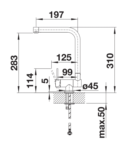 User-friendly fold-down mechanism so the mixer tap folds down to one side