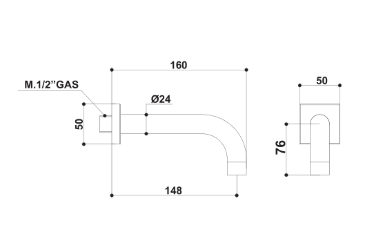Built-in 160 / 220 mms. bath spout.