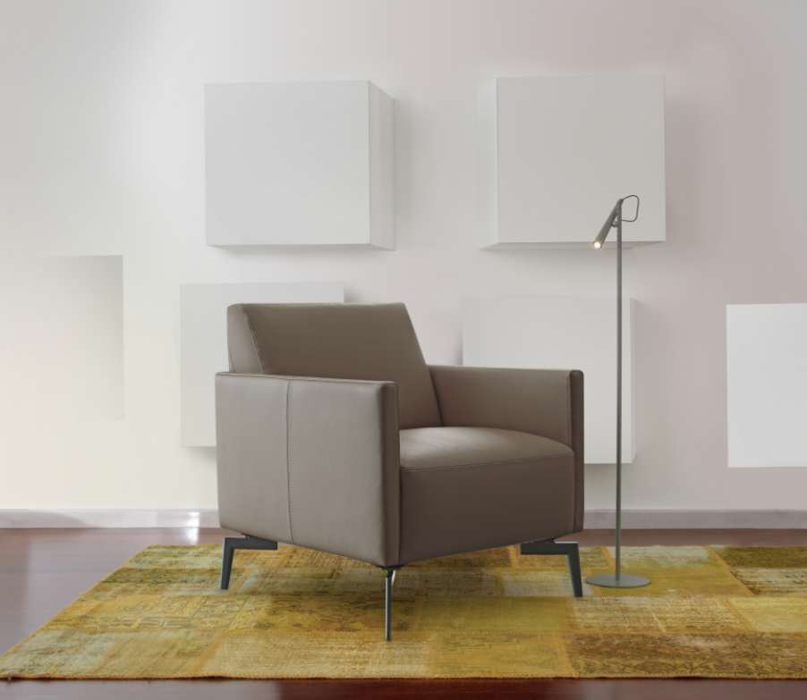 Chanel presenta sedute accoglienti e schienali circondati da due braccioli geometrici e sottili, che danno slancio al modello. La poltroncina è disponibile anche nella versione girevole e divanetto, pensata per gli ambienti più piccoli grazie alle dimensioni contenute.