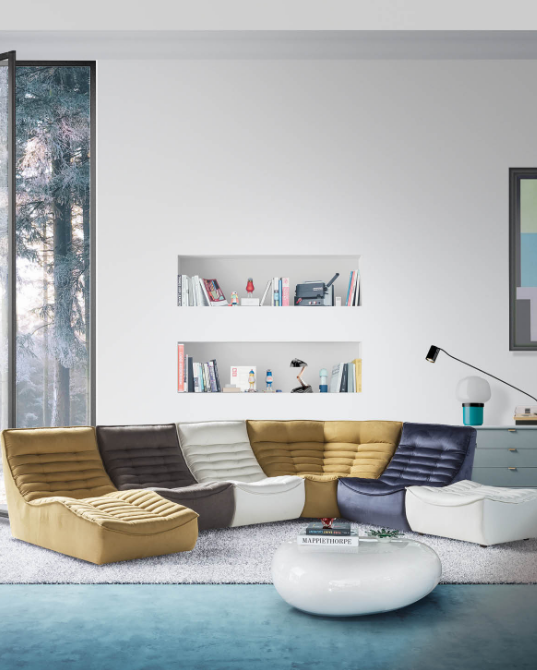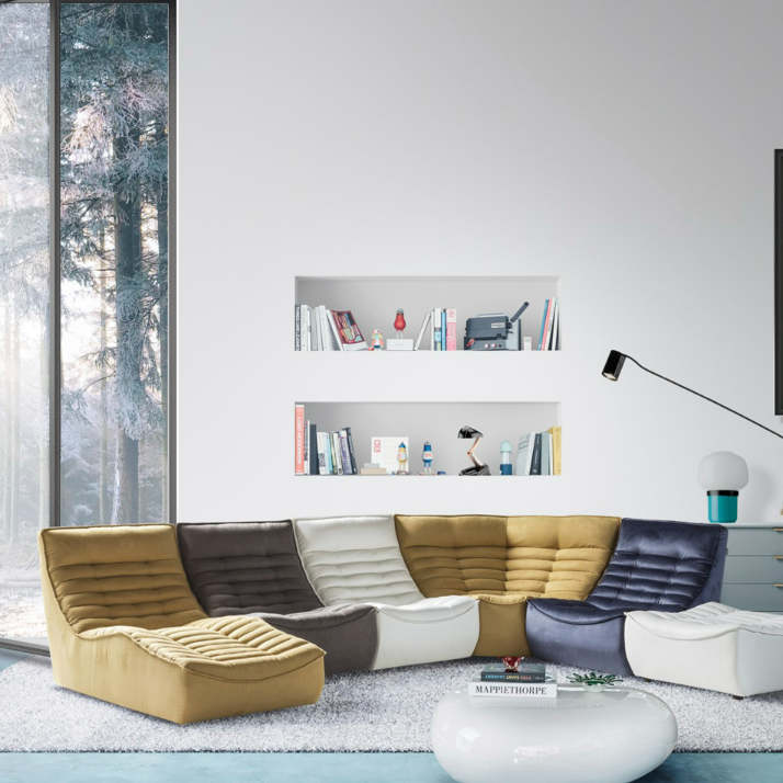 Come una trapunta morbida e accogliente, Fox Trot è il divano modulare che avvolge con un design sinuoso e una lavorazione geometrica. Elementi lineari e angolari, chaise longue e pouf permettono di creare la composizione perfetta per i desideri e la comfort experience di chi lo sceglie.