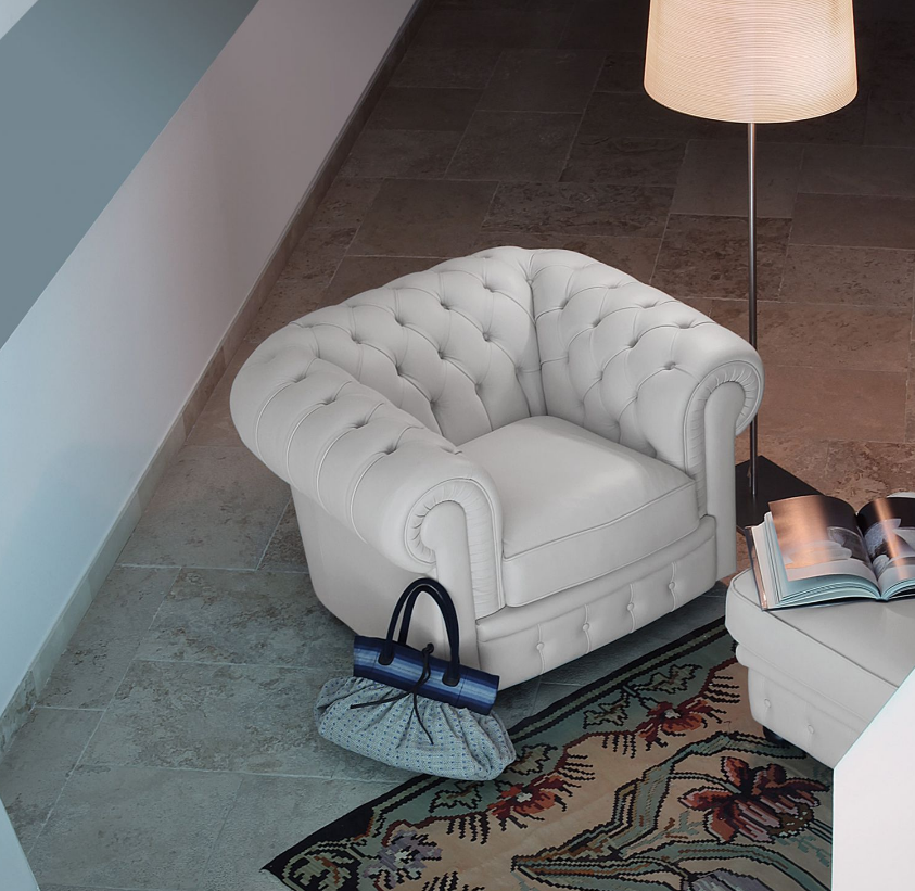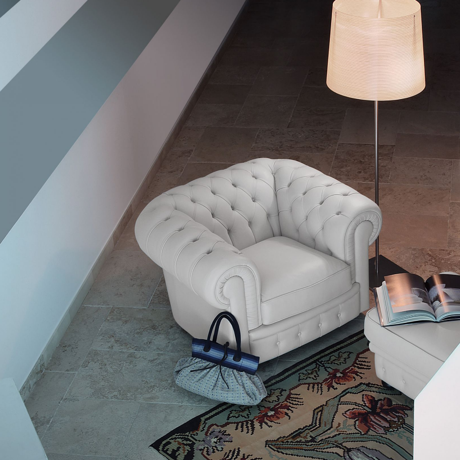 Profilo sinuoso, motivi capitonné e assoluta comodità. Sir William è il divano che evoca atmosfere bon ton e sofisticate. Un divano unico con rivestimento in pelle, sinonimo di alta qualità manifatturiera.