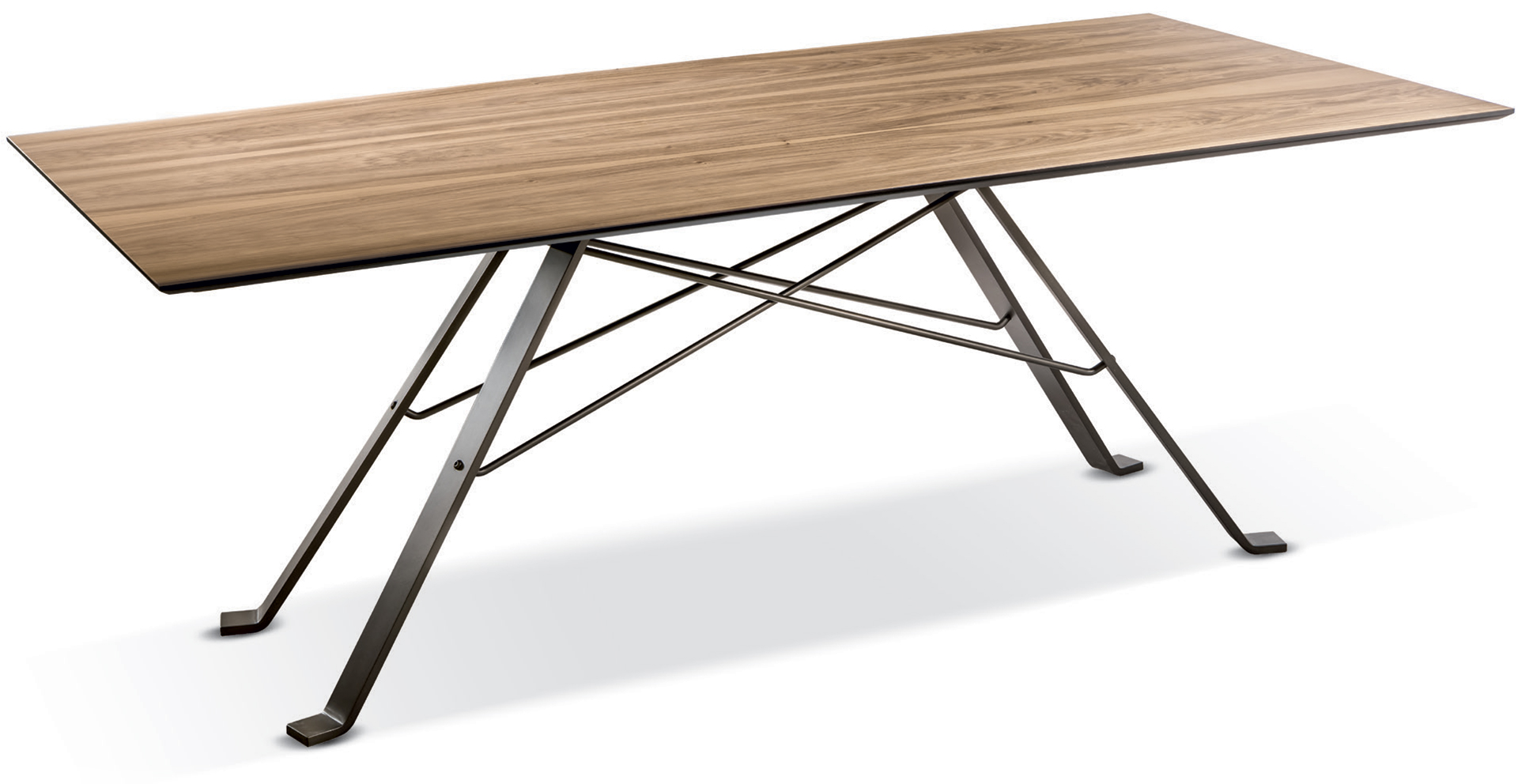 Tavolo in legno Artù con piano rettangolare e base in ferro.