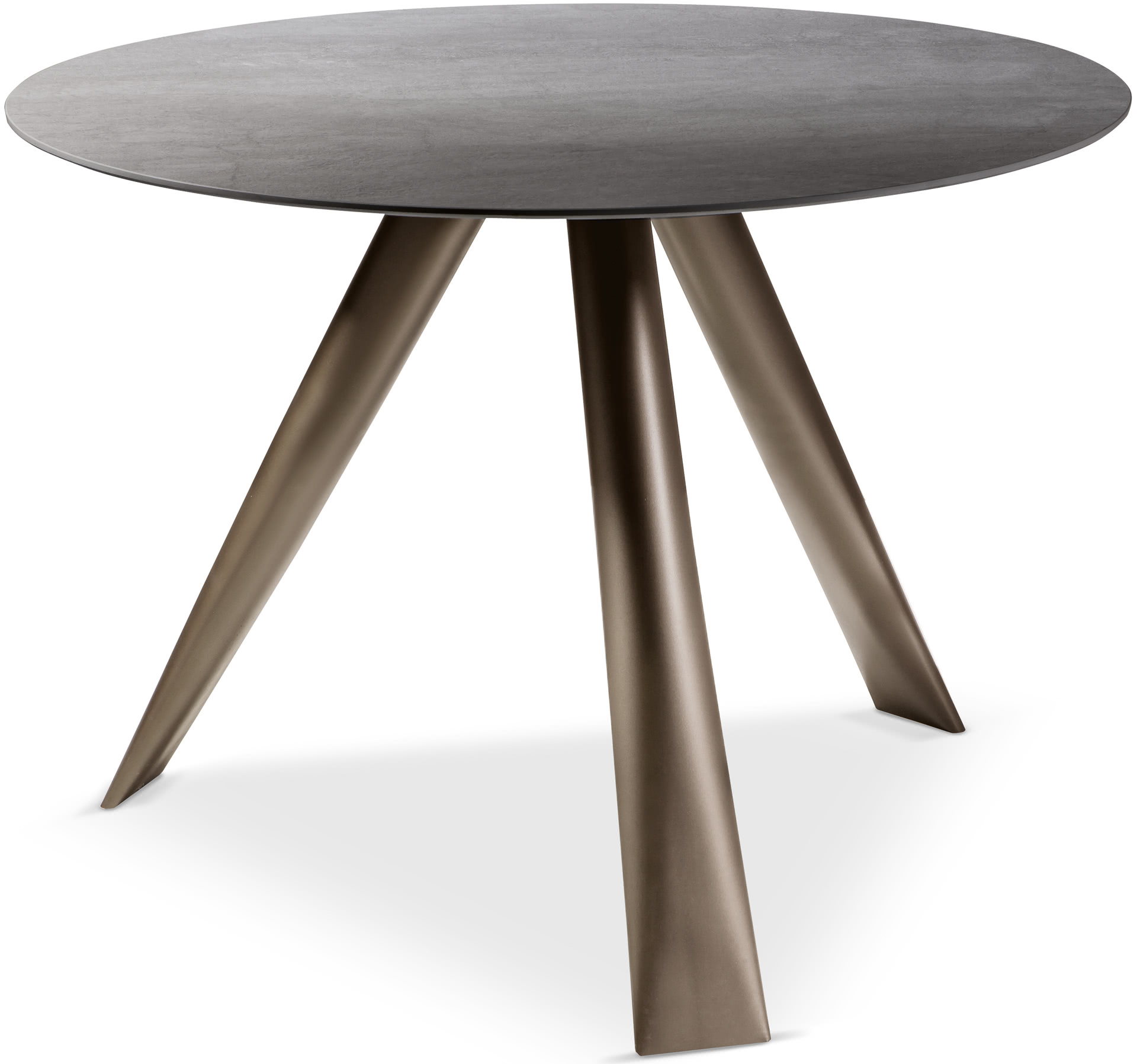 Tavolo in marmo o in ceramica Milos con piano rotondo e gambe in tubolare di ferro.