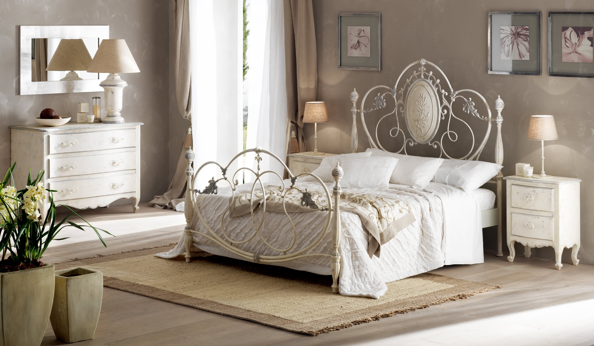 Letto matrimoniale stile country Caruso in ferro battuto.