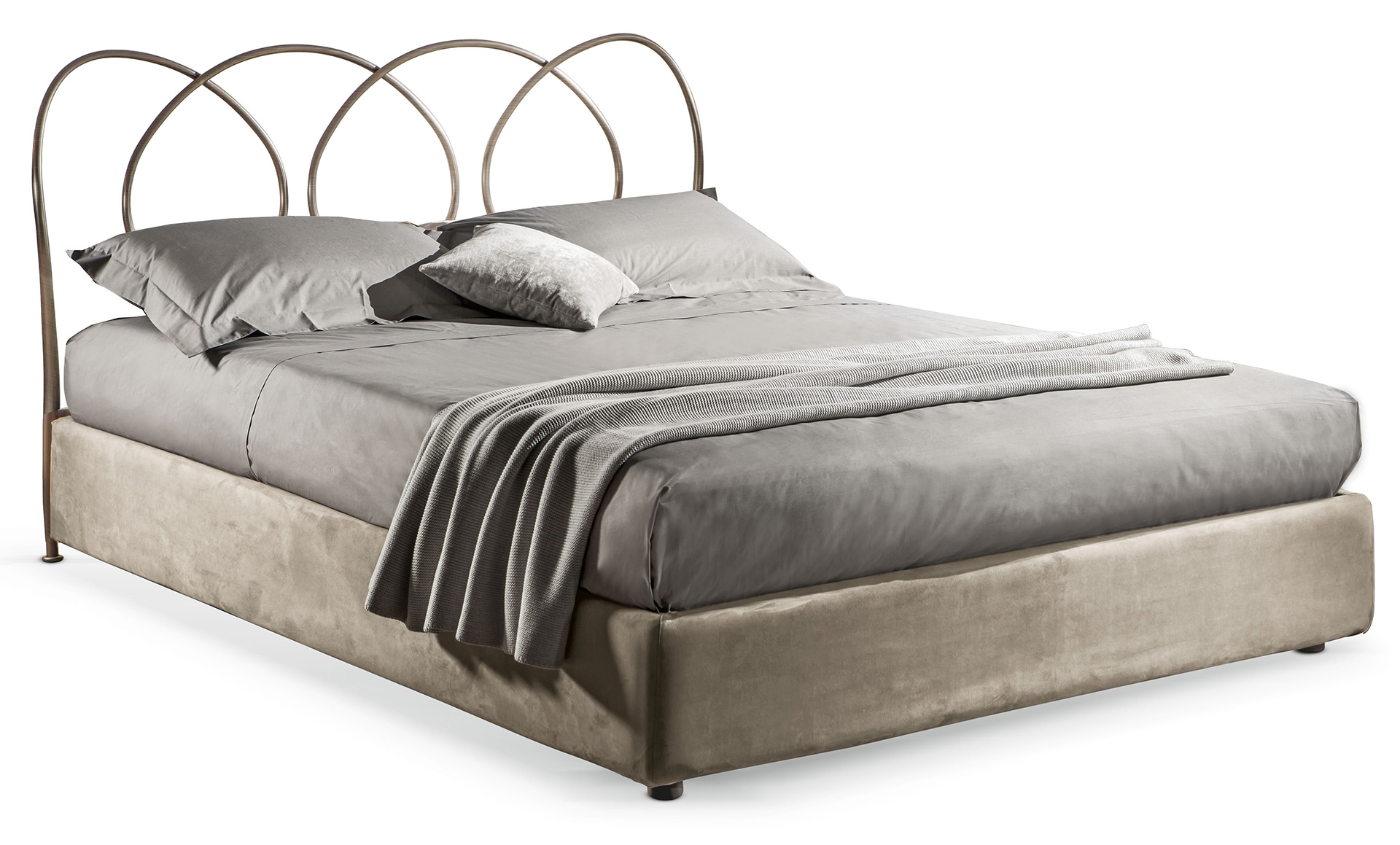 Letto matrimoniale moderno Helios imbottito in metallo.