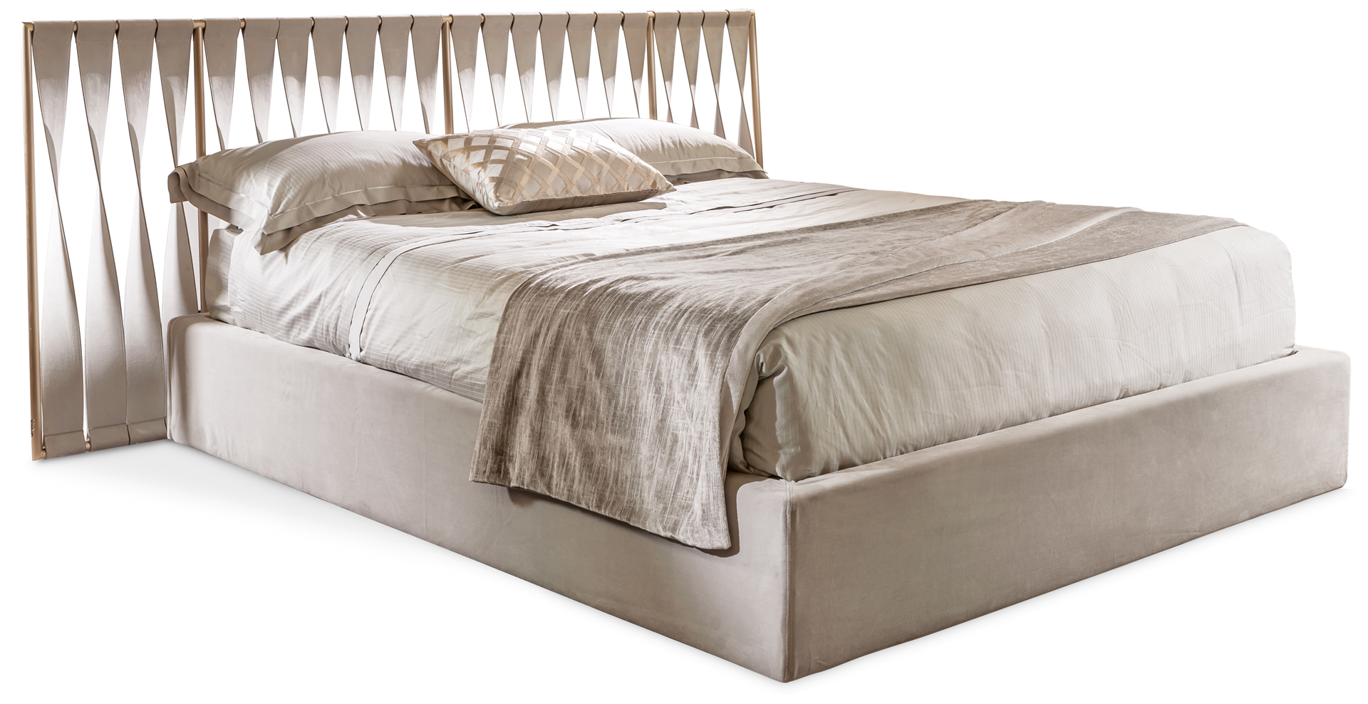 La struttura in metallo, è in finitura a bagno di galvanica in oro, ottone, nichel nero o rame. La spalliera è realizzata con fasce ritorte, di pelle, nabuk, ecopelle, econabuk o di un tessuto fornito dal cliente, cucite a mano con la caratteristica impuntura a vista. Il letto Twist è perfetto per una camera da letto internazionale; è disponibile in varie dimensioni per reti da cm: 160x200 (letto matrimoniale) e 180x200 (letto matrimoniale) anche nella versione con box contenitore.