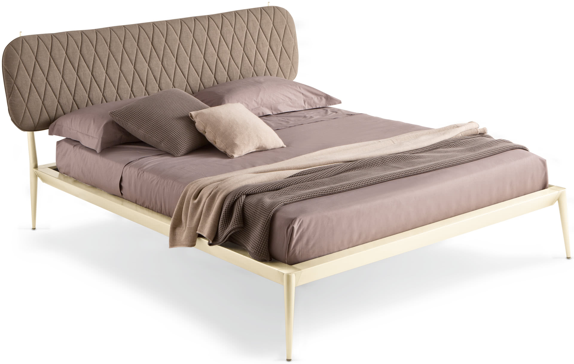 Letto matrimoniale moderno Urbino trapuntato in metallo con testata imbottita.